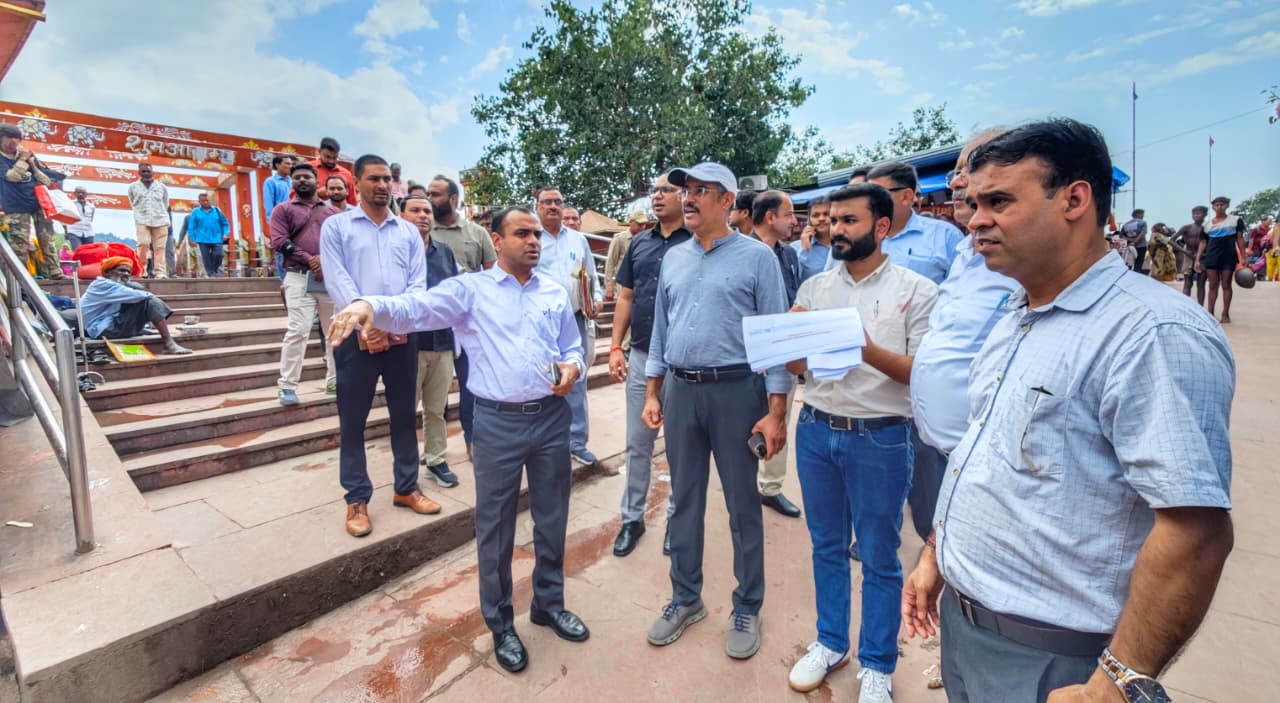 सचिव सिंचाई द्वारा हरकी पैंड़ी क्षेत्र, मालवीय द्वीप, कांगड़ा घाट, महिला घाट, पंत द्वीप, सुभाष घाट, गौघाट एवं रोड़ी बेलवाला आदि क्षेत्रों में प्रस्तावित कार्यों का जिलाधिकारी एवं सम्बन्धित अधिकारियों के साथ स्थलीय निरीक्षण किया। निरीक्षण के दौरान जिलाधिकारी मयूर दीक्षित, प्रमुख अभियंता सुभाष चंद्र, मुख्य अभियंता सिंचाई चंद्रशेखर सिंह, अपर मेंलाधिकारी दयानंद सरस्वती, उपजिलाधिकारी हरिद्वार जितेन्द्र कुमार, अधिशासी अभियंता सिंचाई ओम जी गुप्ता सहित सम्बन्धित अधिकारी मौजूद रहें।