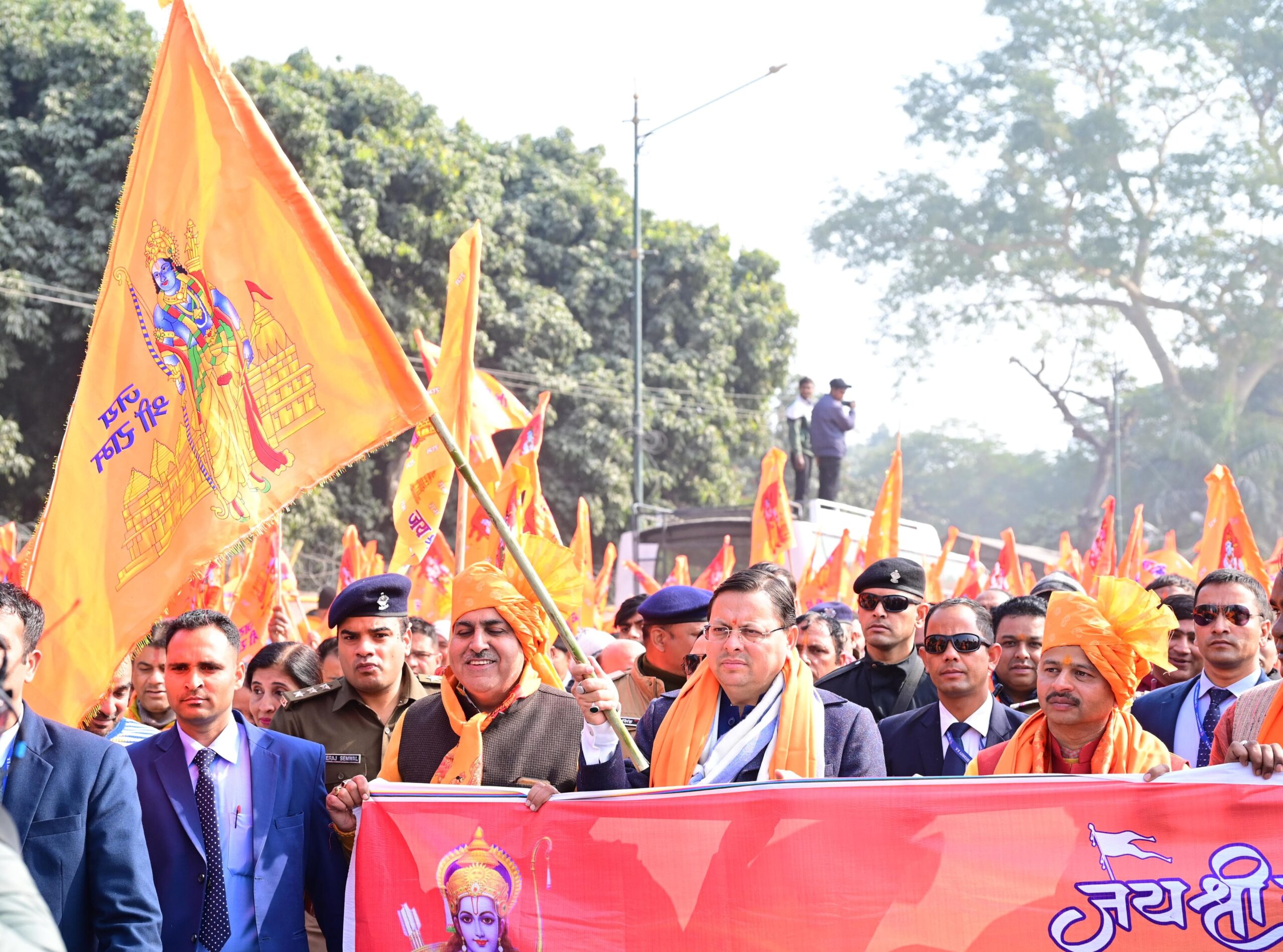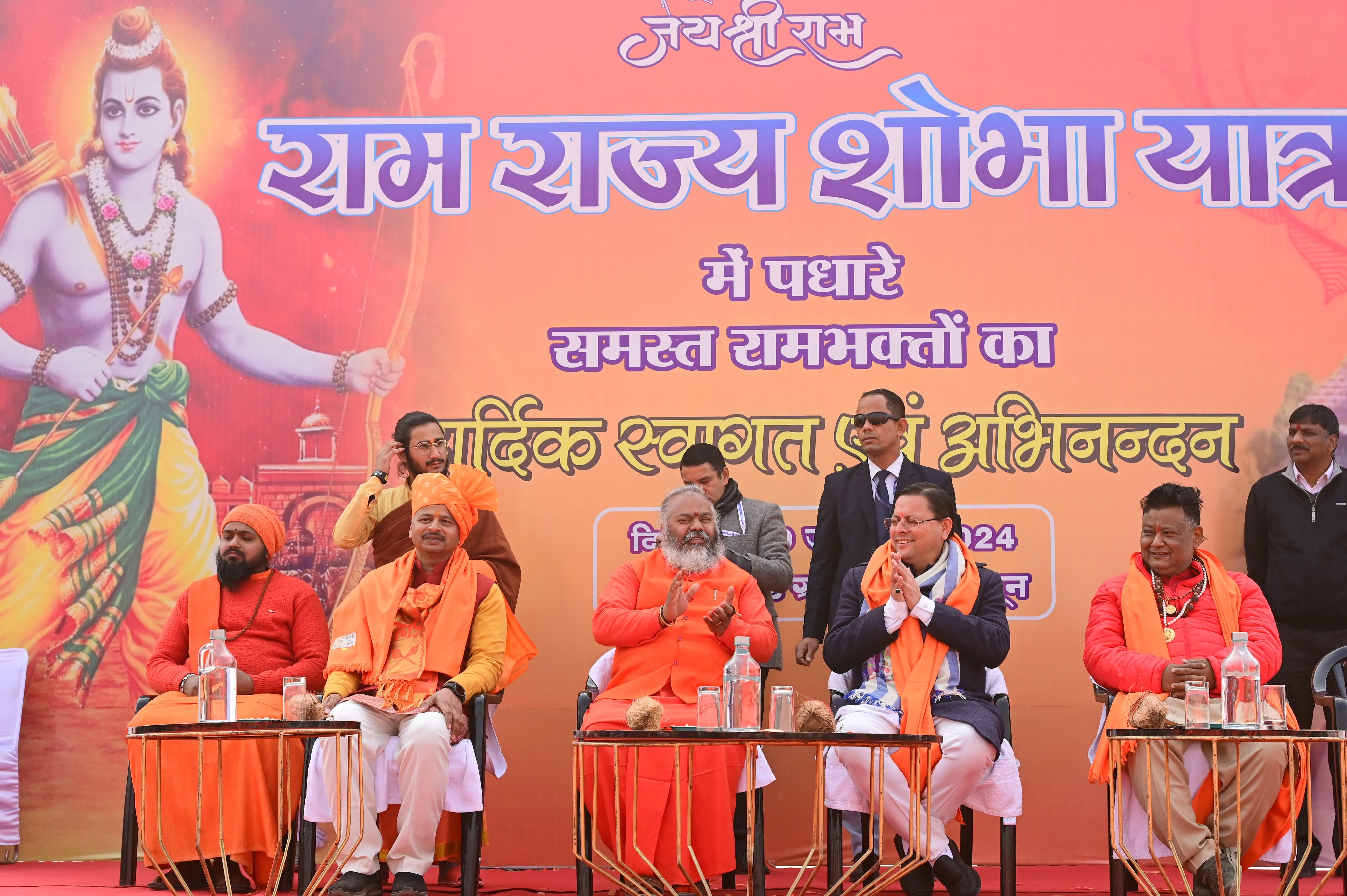 देहरादून : मुख्यमंत्री पुष्कर सिंह धामी ने शनिवार को परेड ग्राउंड देहरादून में श्री राम मंदिर प्राण प्रतिष्ठा उत्सव समिति, द्वारा आयोजित “राम राज्य शोभायात्रा” कार्यक्रम में प्रतिभाग किया। इस दौरान मुख्यमंत्री पुष्कर सिंह धामी ने कहा कि सभी राम भक्तों का 500 से अधिक वर्ष का इंतजार खत्म होकर भव्य राम मंदिर बनने का सपना पूरा हो रहा है। हजारों साधु संतों राम भक्तों, सनातन प्रेमियों के बलिदान के उपरांत इस पुण्य दिन के हम सब साक्षी बनेंगे।