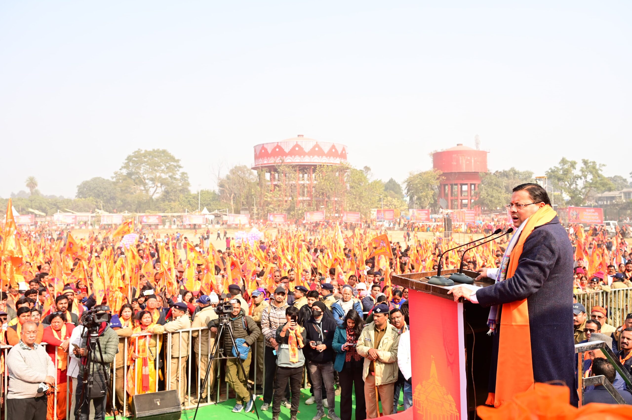 मुख्यमंत्री ने कहा कि 22 जनवरी को आयोध्या में होने वाले भगवान श्रीराम की मूर्ति की प्राण प्रतिष्ठा के हम सब साक्षी बनेंगे। उन्होंने कहा प्रधानमंत्री नरेंद्र मोदी के नेतृत्व में राम मंदिर बनाए जाने का मार्ग प्रशस्त हुआ है। आज उनके नेतृत्व में हमारा देश निरंतर प्रगति के पथ पर अग्रसर है। उन्होंने कहा देवभूमि उत्तराखंड से भगवान श्री राम का भी विशेष नाता है। देवप्रयाग में भगवान श्री राम को समर्पित रघुनाथ मंदिर एवं बागेश्वर जनपद में निर्मल बहती सरयू नदी है। मां सरयू का उद्गम स्थल हमारे उत्तराखंड में है एवं सरयू किनारे ही अयोध्या धाम में श्री राम विराजमान हैं।