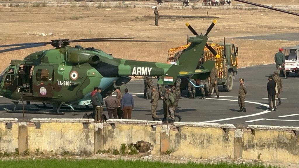 इससे पूर्व गौचर हवाई पट्टी से सेना के विशेष वाहन से शहीद नायक बीरेन्द्र सिंह का पार्थिव शरीर दोपहर 12.30 बजे नारायणबगड़ पहुंचा और अंतिम दर्शनों के लिए जीआईसी के प्रांगण में सेना के बैंड के साथ लाया गया। शहीद के पिता सुरेंद्र सिंह उनकी दोनों बेटियां इशिका और आयशा बडे भाई धीरेंद्र सिंह ने उनके अंतिम दर्शन करते हुए पुष्पांजलि अर्पित की। सेना की ओर से देहरादून से आए जनरल मेजर कमांडिंग टीएम पटनायक, गढ़वाल राइफल्स देहरादून सेंटर कमांड के लेफ्टिनेंट जनरल राजा सुब्रमणि, माउंटेन ब्रिगेड जोशीमठ के ब्रिगेड कमांडर अमन आनंद और स्थानीय प्रशासन की ओर से पुलिस अधीक्षक चमोली रेखा यादव, एसडीएम कमलेश मेहता, तहसीलदार सुरेंद्र देव ने शहीद सैनिक के पार्थिव शरीर पर पुष्पचक्र अर्पित करते हुए नम आंखों से श्रद्धांजलि दी।