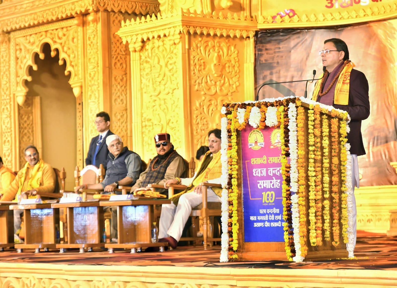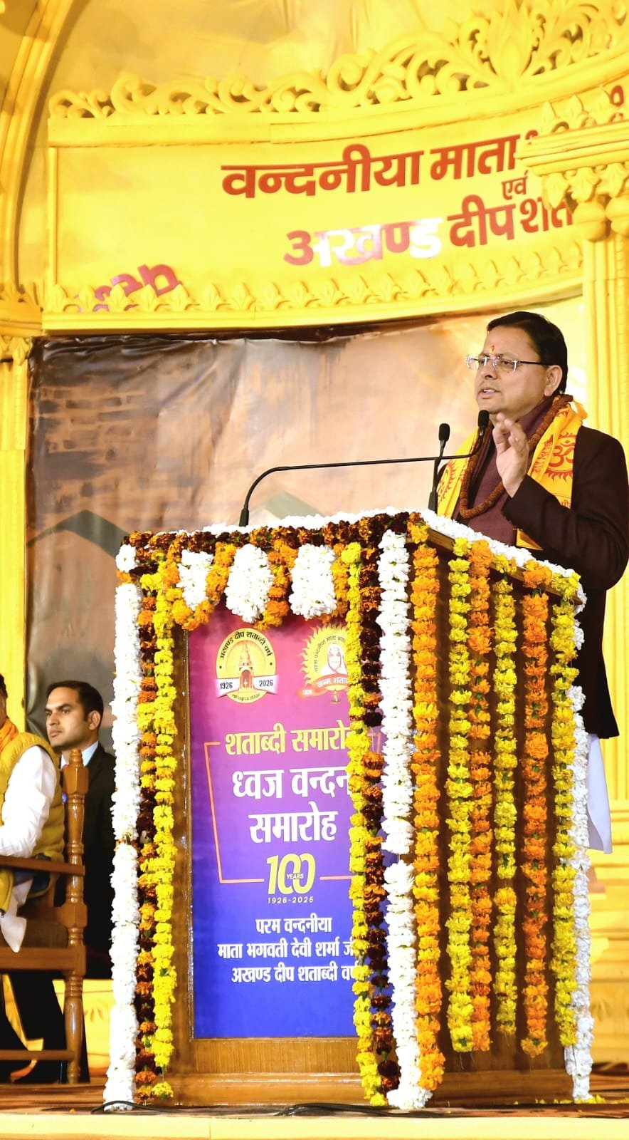 इस अवसर पर मुख्य अतिथि उत्तराखण्ड के मुख्यमंत्री पुष्कर सिंह धामी ने कहा कि यह शताब्दी समारोह माताजी के तपस्वी जीवन, निःस्वार्थ सेवा और अखंड साधना के प्रति राष्ट्र की कृतज्ञता का साक्षात भावात्मक अभिव्यक्ति है। माताजी का संपूर्ण जीवन त्याग, बलिदान और साधना की वह ज्योति है, जिसने असंख्य जीवनों को सही दिशा और नई दृष्टि दी। उन्होंने कहा कि गायत्री परिवार को किसी एक संगठन की सीमाओं में नहीं बाँधा जा सकता, यह उस युग चेतना का वह प्रवाह है, जो व्यक्ति से समाज और समाज से राष्ट्र के उत्थान की ओर अग्रसर करता है। मुख्यमंत्री ने देवभूमि उत्तराखण्ड की आध्यात्मिक चेतना का स्मरण करते हुए कहा कि गंगोत्री, यमुनोत्री, केदारनाथ, बद्रीनाथ और आदि कैलाश जैसे तीर्थस्थल भारत की आत्मा की धड़कन हैं। ऐसे पावन परिवेश में आयोजित यह शताब्दी समारोह भारतीय संस्कृति, संस्कार और साधना परंपरा के नवजागरण का संदेश देता है।