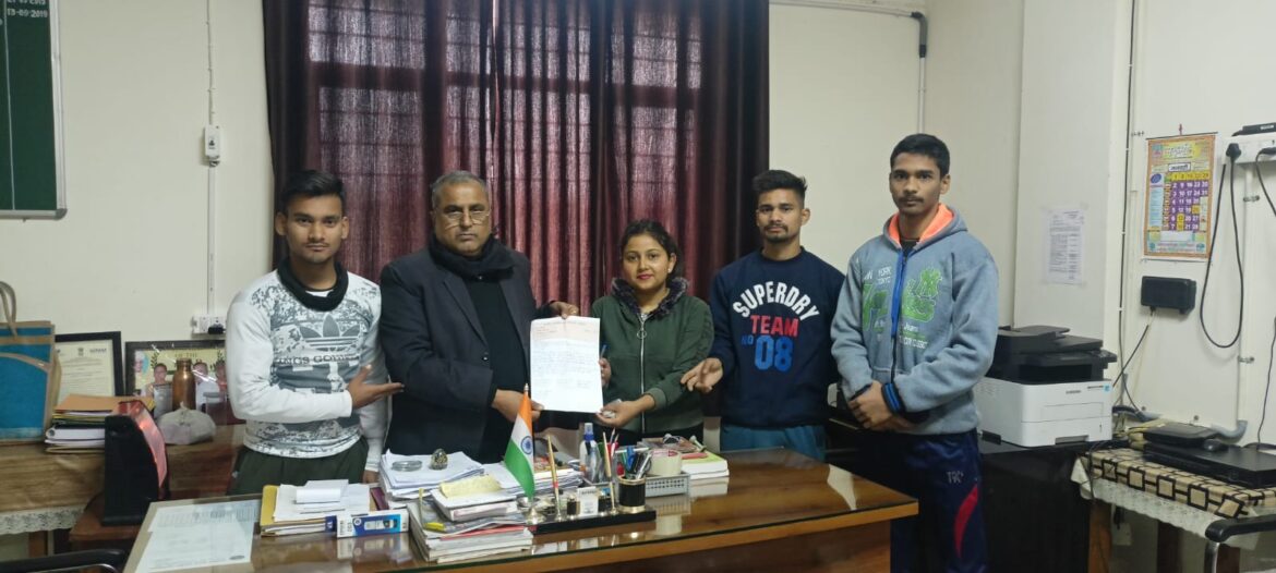 कोटद्वार । अखिल भारतीय विद्यार्थी परिषद कण्वघाटी के छात्र संघ पदाधिकारियों ने राजकीय महाविद्यालय कण्वघाटी कोटद्वार के प्राचार्य को ज्ञापन दिया । जिसमें महाविद्यालय में जल्द से जल्द एनसीसी, एनएसएस की सुविधाएं उपलब्ध करवाने की मांग की गई क्योंकि महाविद्यालय मे एनसीसी, एनएसएस ना होने की वजह से स्थानीय विद्यालय से महाविद्यालय में प्रवेश लेने वाले छात्रों को जब यह सुविधा नहीं मिलती तो छात्र पीजी कॉलेज कोटद्वार जाते हैं जिसके लिए उन्हें प्रातःकाल जाना होता है लेकिन सार्वजनिक वाहन ना तो प्रातः काल मिलते हैं और ना ही सभी छात्रों की आर्थिक स्थिति इतनी मज़बूत होती है की वो रोज का किराया दे पाएं । महाविद्यालय के प्राचार्य ने आश्वासन दिया की जल्द ही महाविद्यालय में एनएसएस शुरू हो जाएगी साथ ही सेमेस्टर परीक्षा फॉर्म भरने की डेट को भी आगे बढ़ाने की मांग की क्योंकि अभी बहुत से छात्रों ने फॉर्म नहीं भरा है प्राचार्य ने एग्जाम फॉर्म डेट आगे बढ़ाने का भी आश्वासन दिया है । ज्ञापन प्रेषित करते समय छात्र संघ अध्यक्ष अंशिका केष्टवाल, छात्र संघ सचिव आयुष रावत, छात्र संघ सह सचिव प्रज्वल गैरोला, छात्र संघ उपाध्यक्ष सौरभ सिंह, जिला सह संयोजक अजय रावत, पूर्व छात्र परिषद अध्यक्ष सागर कंडवाल आदि मौजूद रहे ।