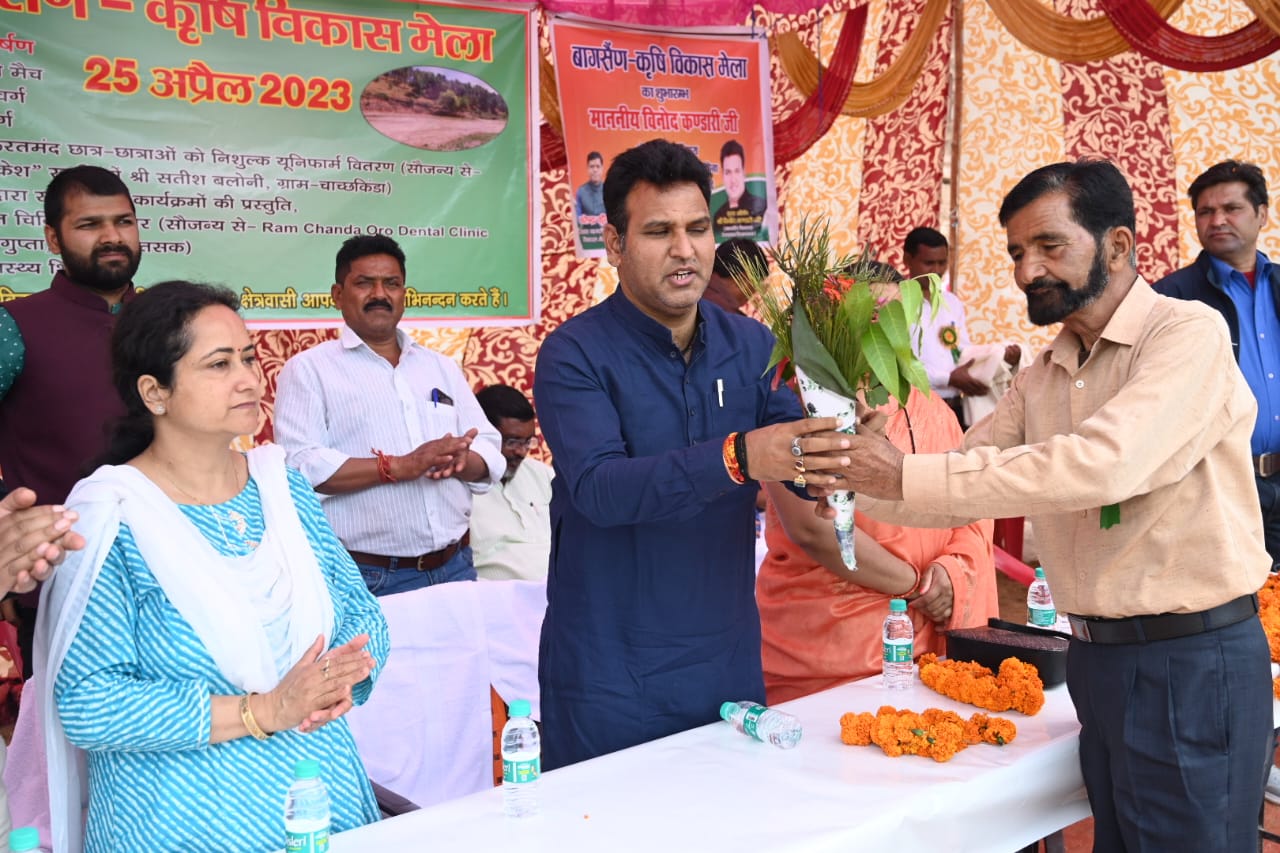 बागसैंण कृषि विकास मेला के अवसर क्षेत्रीय विधायक विनोद कण्डारी ने कहा कि मेले भावनात्मकता के प्रतीक होते है, मेले हमारे पूर्वजांे की धरोहर है और अपनी धरोहर, अपनी संस्कृति को संरक्षित रखना हमारी जिम्मेदारी है। देश दुनिया में उनकी पहचान हो, इस पर कार्य करना है। कहा कि अगली बार इस मेले को और भव्य रूप में मनाया जायेगा। कहा कि सरकार जनता के द्वार कार्यक्रम के तहत मेले में आज विभिन्न विभागों द्वारा विभागीय स्टॉलों के माध्यम विभिन्न जन कल्याणकारी योजनाओं की जानकारी देने के साथ ही उपकरण एवं दवा वितरण किया जा रहा है, इसका अधिक से अधिक लाभ लें। कहा कि क्षेत्र के विकास के लिए वे निरन्तर प्रयासरत् हैं, सड़क, पेजयल, स्वास्थ्य आदि सभी क्षेत्रों में विकास कार्य तभी सम्भव हैं, जब विकास के नाम पर सभी का एक मत हो। कहा कि बच्चे कुछ सिख सकें, इसके लिए वे अपने विधान सभा क्षेत्र के टॉपर बच्चों को भ्रमण पर ले जाते हैं। कहा कि इन बच्चों को भारत दर्शन कराने की भी योजना है।