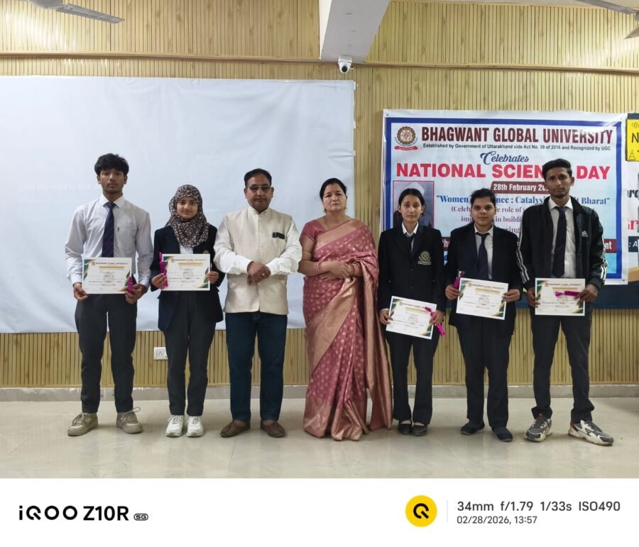 कोटद्वार : Bhagwant Global University (भगवंत ग्लोबल यूनिवर्सिटी) के अनुप्रयुक्त विज्ञान एवं मानविकी विभाग द्वारा राष्ट्रीय विज्ञान दिवस बड़े उत्साह एवं गरिमा के साथ मनाया गया। कार्यक्रम का उद्देश्य विद्यार्थियों में वैज्ञानिक सोच, नवाचार एवं अनुसंधान के प्रति रुचि जागृत करना था।