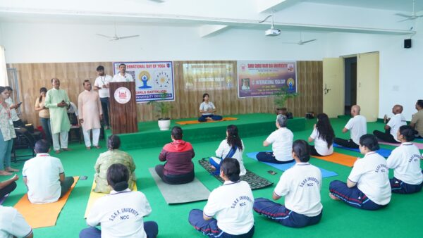 देहरादून। श्री गुरु राम राय विश्वविद्यालय (एसजीआरआरयू) में अंतर्राष्ट्रीय योग दिवस के अवसर पर स्कूल आफ यौगिक साइंस एवं नैचुरोपैथी द्वारा ‘स्वयं और समाज के लिए योग‘ वर्ष 2024 की थीम पर अंतर्राष्ट्रीय योग दिवस प्रोटोकॉल कार्यक्रम का आयोजन किया गया। श्री गुरु राम राय विश्वविद्यालय के प्रेसिडेंट श्रीमहंत देवेंद्र दास जी महाराज और विश्वविद्यालय के कुलपति प्रोफेसर डाॅ. यशबीर दीवान ने अंतर्राष्ट्रीय योग दिवस के अवसर पर सभी को शुभकामनाएं प्रेषित कीं।