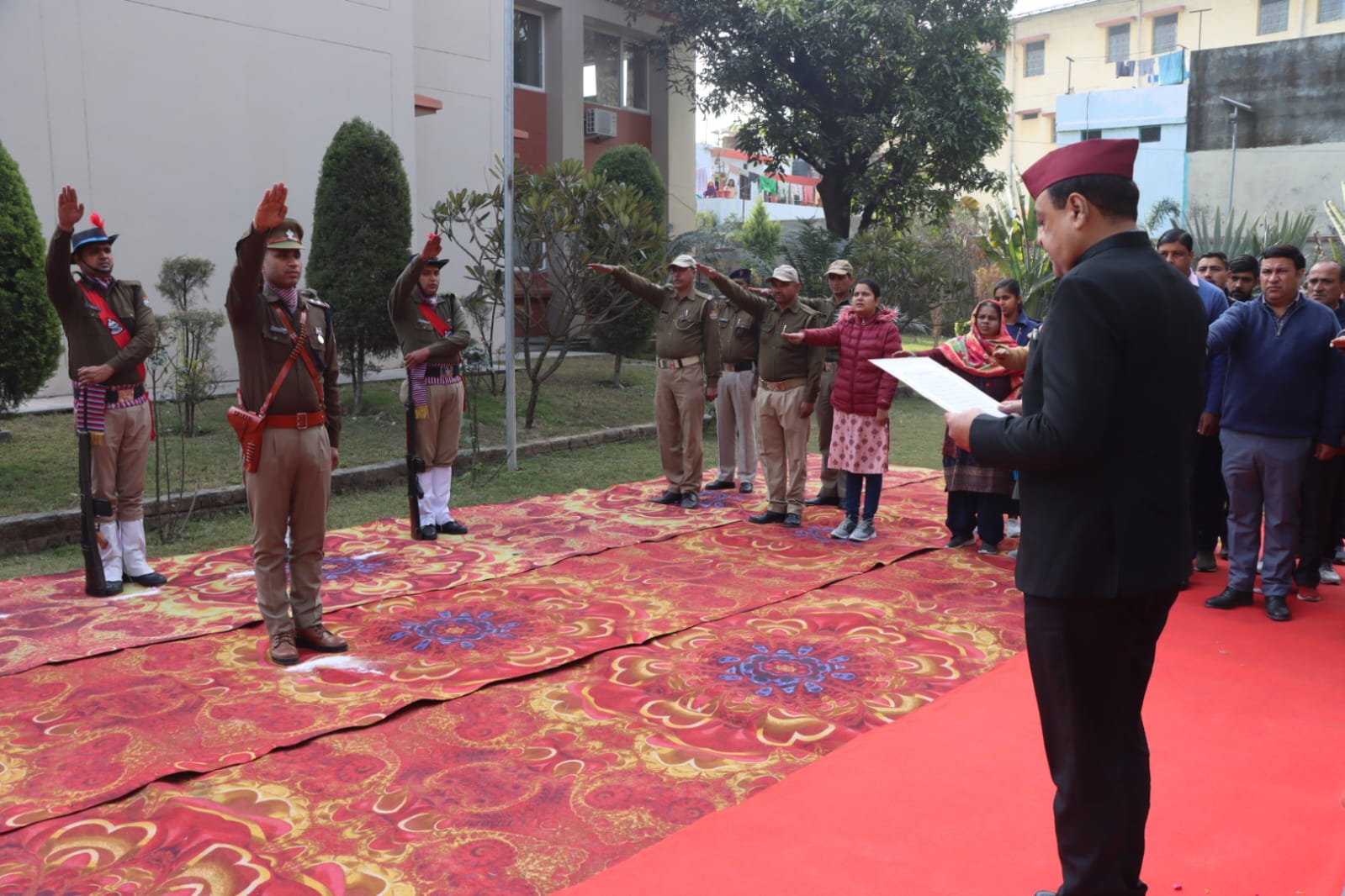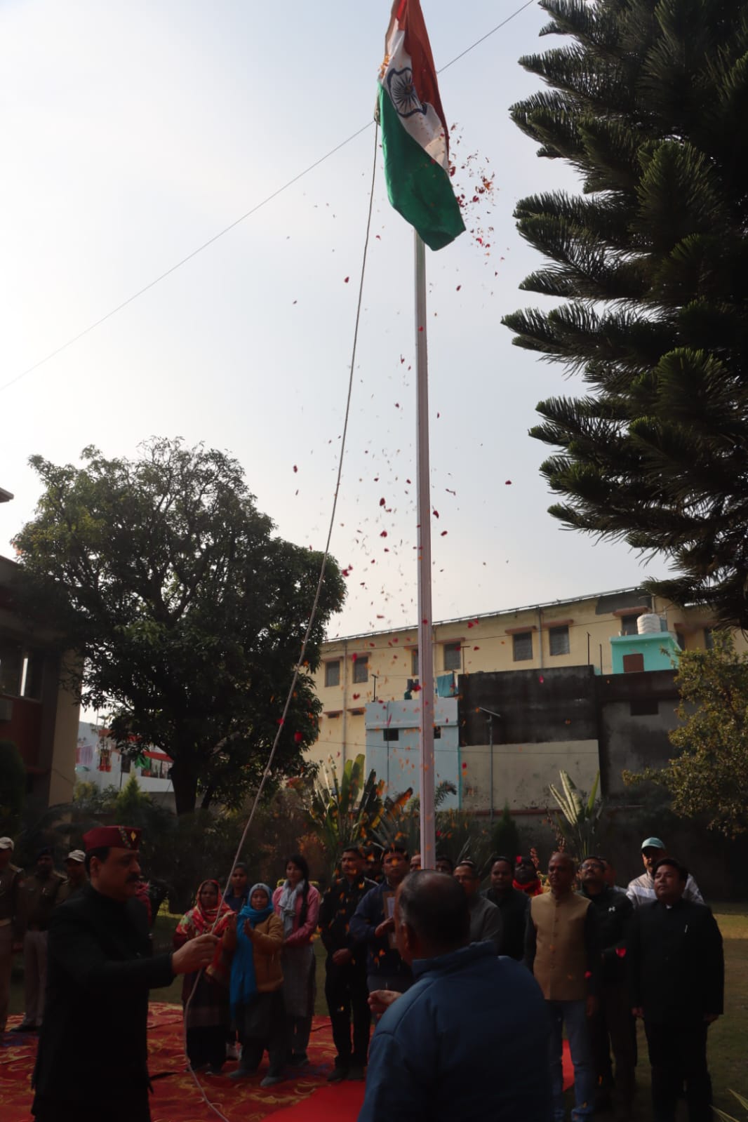 देहरादून : गणतंत्र दिवस के अवसर पर आयुक्त गढवाल मण्डल विनय शंकर पाण्डेय ने आयुक्त शिविर कार्यालय में ध्वजारोहण किया। तथा सभी को गणतंत्र दिवस की शुभकामनाएं दी। आयुक्त गढवाल मण्डल ने सभी अधिकारियों/कर्मचारियों से कहा कि हम सभी की जिम्मेदारी है कि हम अपने कार्यालयों में निष्पक्ष एंव पारदर्शिता का माहौल बनाएं जिससे सरकार की जन कल्याणकारी योजनओं से पात्रों को लाभान्वित कर सकें। इस अवसर पर उन्होने अधिकारी कर्मचारियों को शपथ दिलाई। उन्होंने नवोदय विद्यालय के बच्चों को पुरस्कार वितरण किया तथा परेड सलामी में उपस्थित गार्ड को भी पुरस्कार देकर सम्मानित किया।
