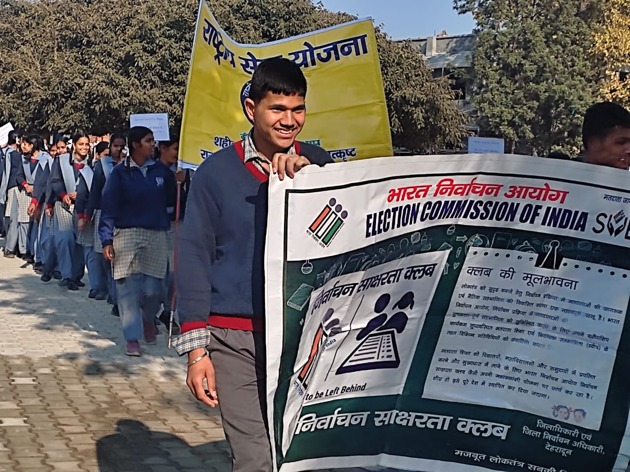 जिला निर्वाचन अधिकारी/जिलाधिकारी के निर्देशों के अनुपालन में जनपद के विभिन्न स्थानों पर स्वीप के तहत मतदाता जागरूकता अभियान चलाया जा रहा है जिसमें स्कूली बच्चों द्वारा जागरूकता कार्यक्रम एवं रैली तथा सामुदायिक स्वास्थ्य केन्द्रों एवं शासकीय कार्यालयों में मतदाता शपथ कार्यक्रम के साथ ही आंगनबाड़ी कर्यकर्तियों द्वारा घर-घर जाकर मतदाताओं को मतदान की शपथ दिलाई जा रही है। इसके अतिरिक्त स्वयं सहायता समूहों द्वारा मतदाताओं को जागरूक करने का कार्य किया जा रहा है। इसी परिपेक्ष्य में आज प्राथमिक स्वास्थ्य केन्द्र मेंहूवाला, ट्रिनिटी स्कूल सहसपुर, गुरूरामराय स्कूल भाऊवाला, थानों रायपुर सहित जनपद के विभिन्न स्थानों पर मतदाता जारूकता कार्यक्रम करते हुए मतदान के प्रति जागरूक किया गया।