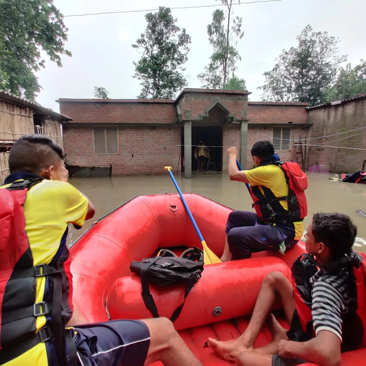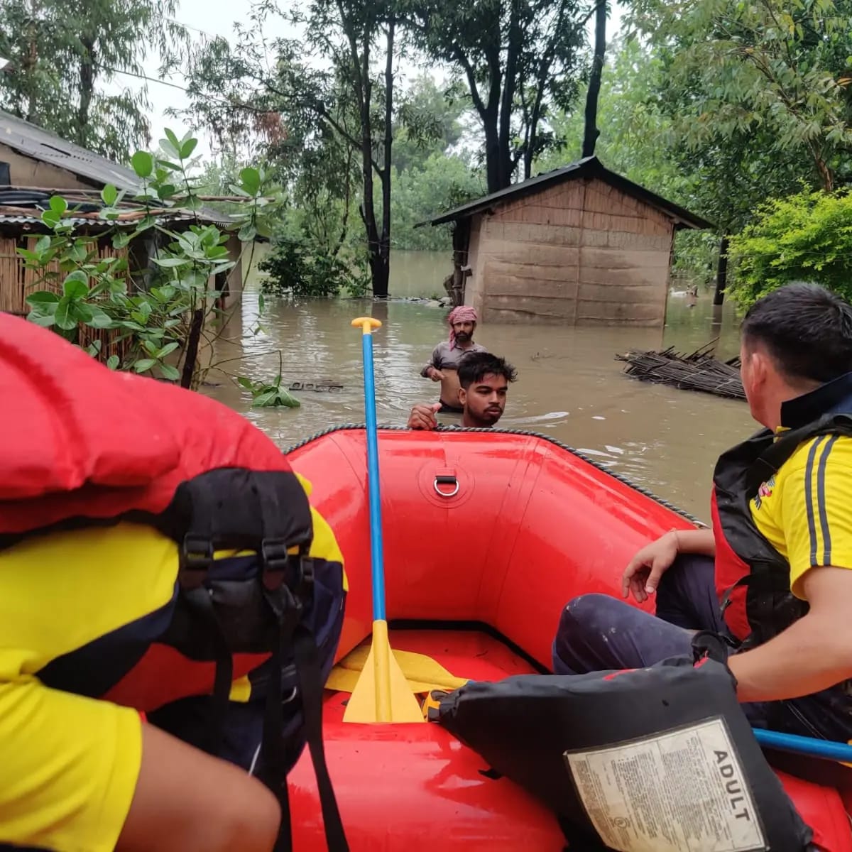 सितारगंज : जनपद उधमसिंहनगर के सितारगंज के अरविन्द नगर क्षेत्र में जलभराव से घरों में फंसे लोग, SDRF ने चलाया राहत बचाव अभियान। आज 09 अगस्त 2023 को प्रातः जिला आपदा प्रबंधन अधिकारी, रुद्रपुर जनपद उधमसिंहनगर द्वारा SDRF टीम को सूचित किया गया कि सितारगंज के अरविन्दनगर क्षेत्र में अत्यधिक जलभराव से लोगो के घरों में पानी भर गया है, जिन्हें सुरक्षित निकालने हेतु SDRF टीम की आवश्यकता है। उक्त सूचना प्राप्त होते ही SDRF रेस्क्यू टीम मुख्य आरक्षी खीम सिंह के हमराह मय राफ्ट व अन्य आवश्यक रेस्क्यू उपकरणों के तत्काल घटनास्थल के लिए रवाना हुई। SDRF टीम द्वारा घटनास्थल पर पहुँचकर त्वरित कार्यवाही करते हुए राफ्ट की सहायता से जलमग्न मकानों में से लगभग 200 लोगो को रेस्क्यू कर सकुशल सुरक्षित स्थान पर पहुँचाया गया।