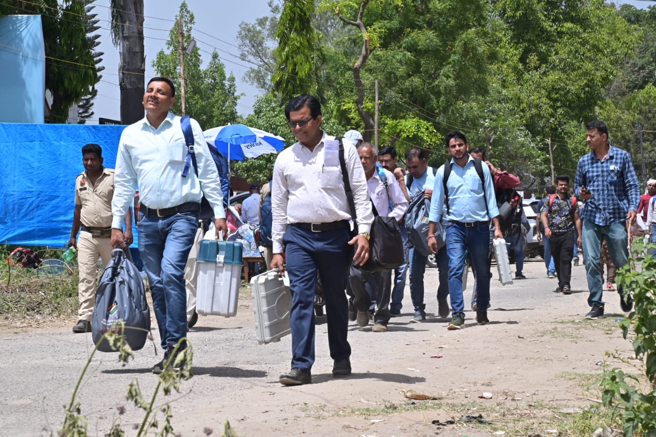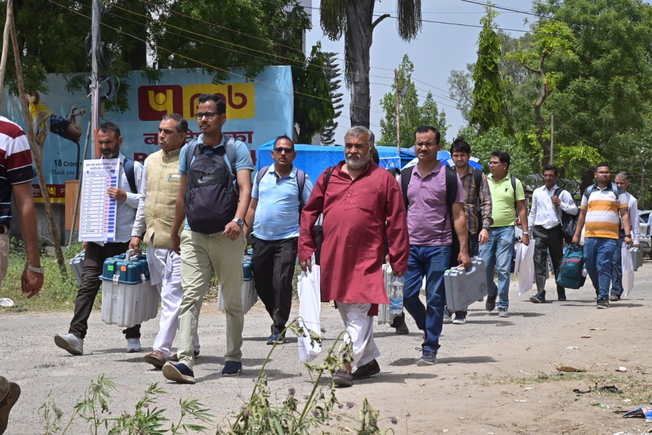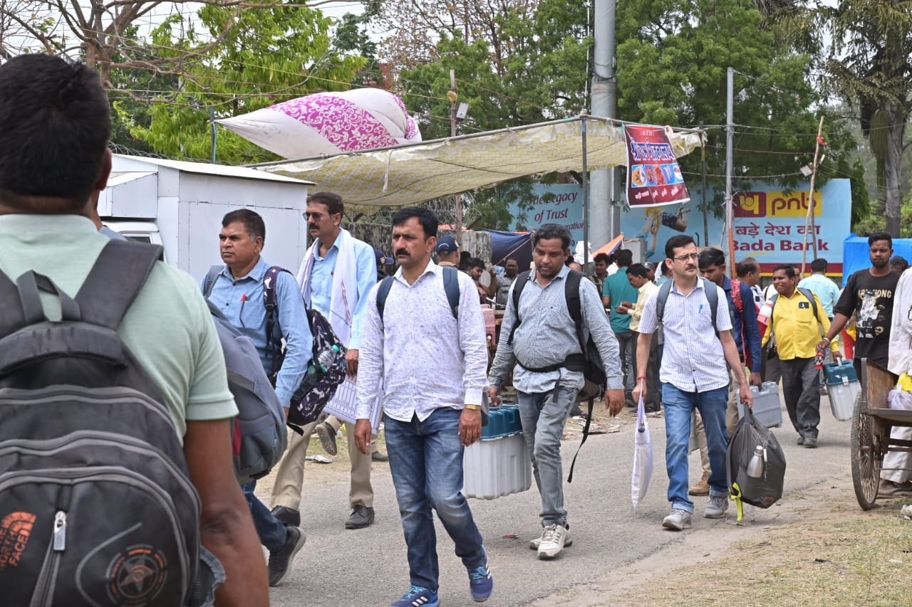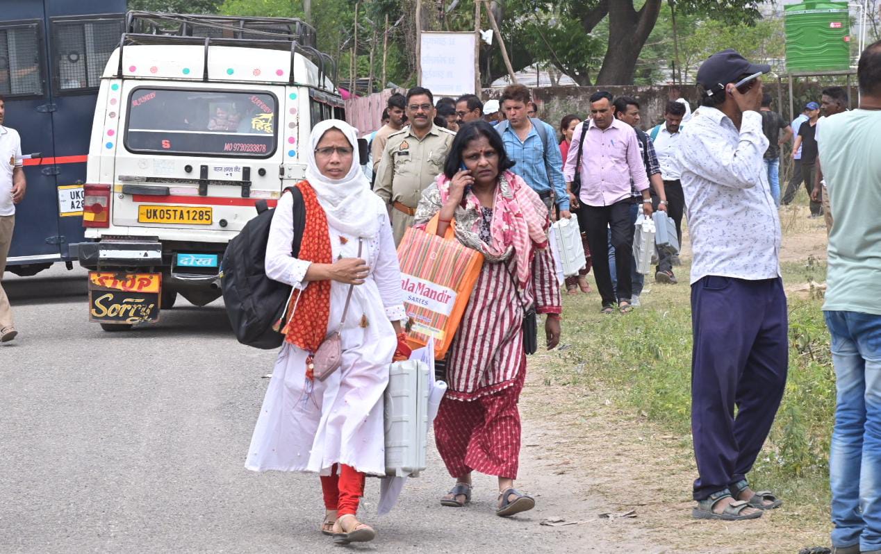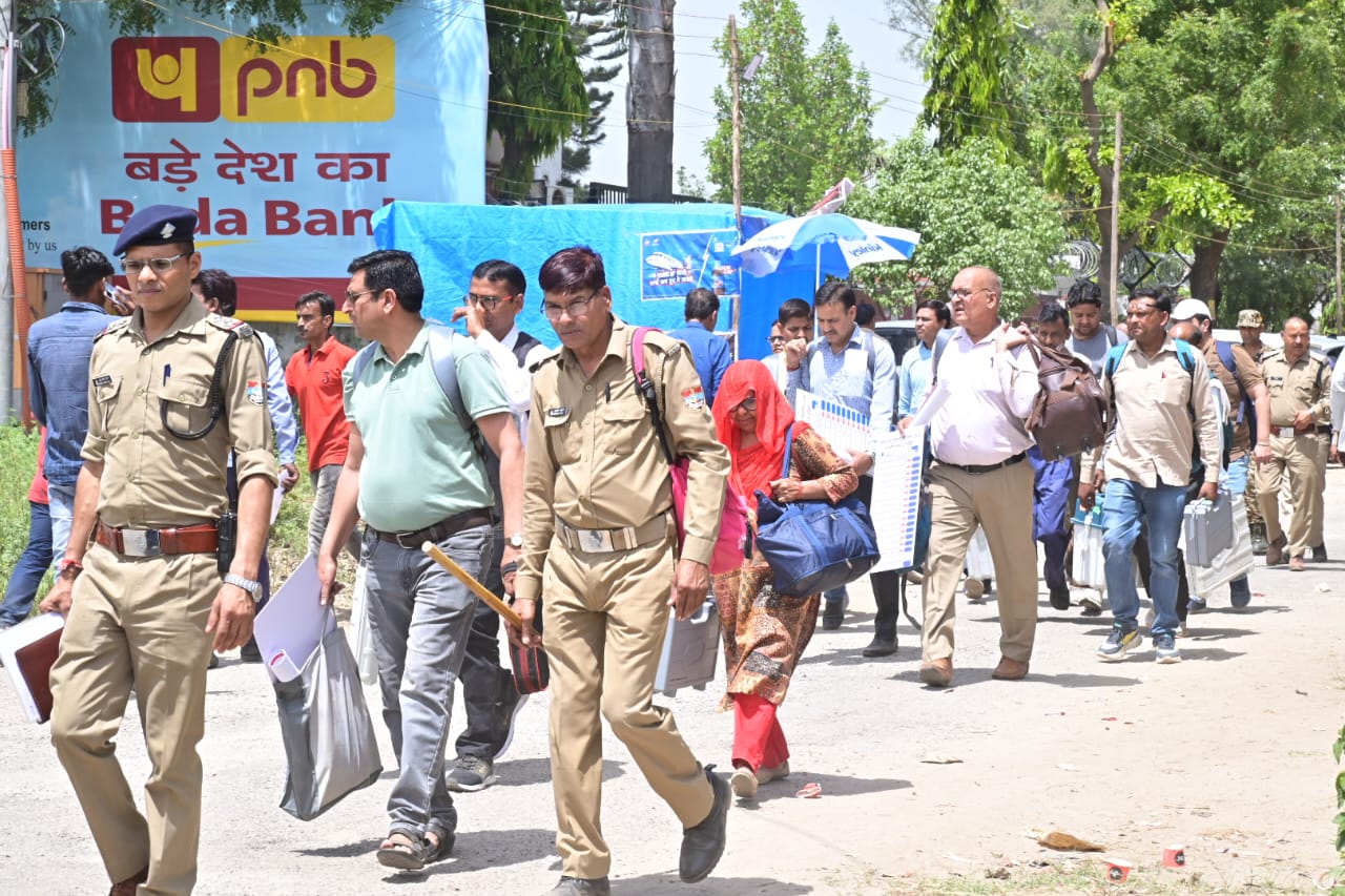 हरिद्वार : जनपद की 11 विधानसभाओं मतदान केंद्रों के लिए पोलिंग पार्टियां सुरक्षा बल के साथ मतदेय स्थलों को हुई रवाना। लोकसभा सामान्य निर्वाचन-2024 को स्वतंत्र, निष्पक्ष, पादर्शिता के साथ सम्पन्न कराने के लिये जिला निर्वाचन अधिकारी एवं रिटर्निंग ऑफिसर धीराज सिंह गर्ब्याल की देख-रेख में पोलिंग पार्टियां केंद्रीय विद्यालय भेल से मतदान सामाग्री एवं ईवीएम, वीवी पैट लेकर मतदेय स्थलों को प्रस्थान किया।