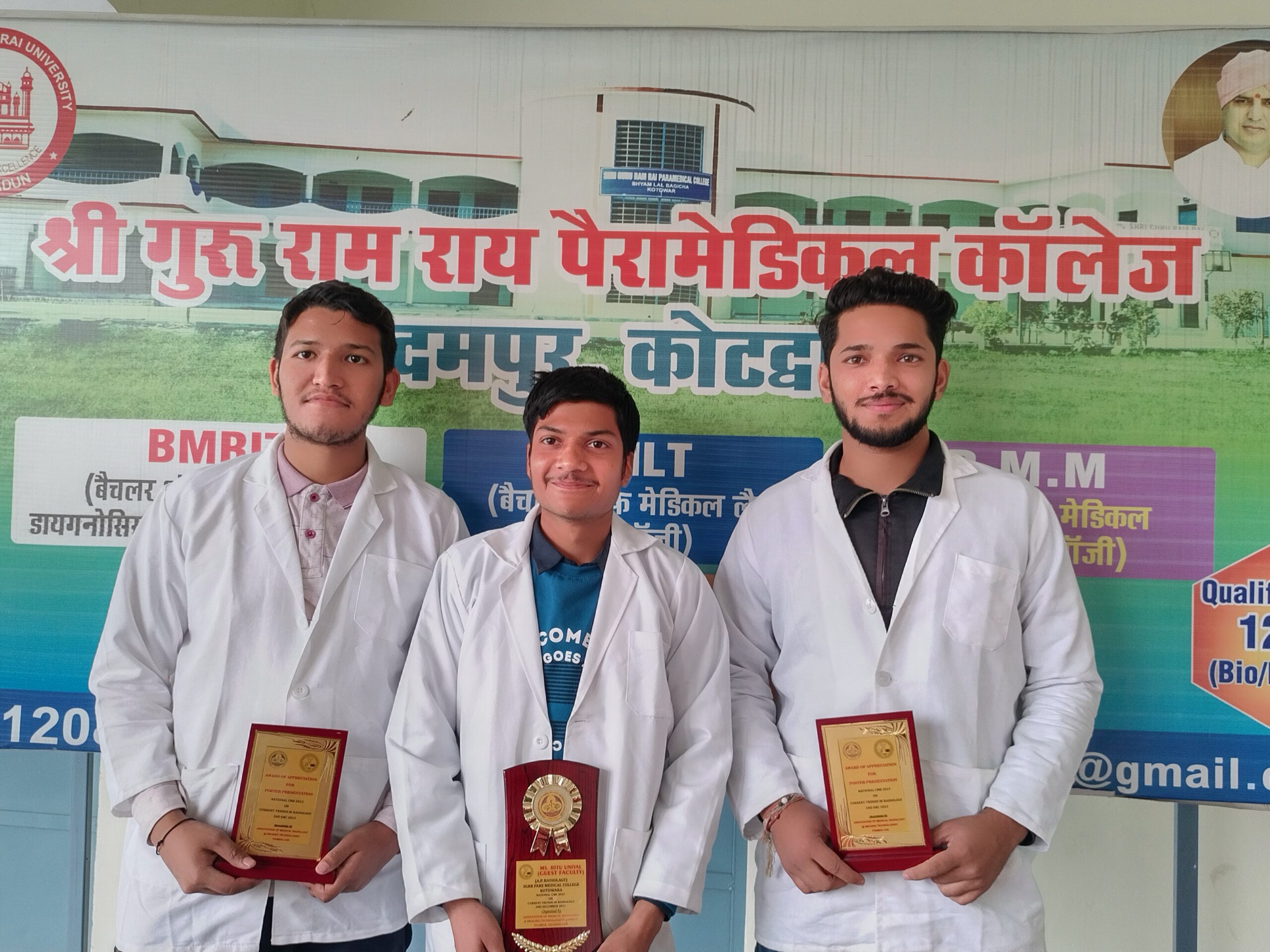 सेमिनार में श्री गुरु राम राय पैरामेडिकल काॅलेज कोटद्वार के असिस्टेंट प्रोफेसर ऋतु उनियाल के मार्गदर्शन में 20 छात्रों ने प्रतिभाग किया। कार्यक्रम में रेडियोलाॅजी विभाग से सम्बन्धित पोस्टर एवं माॅडल प्रदर्शनी लगाई गई थी, जिसमें एसजीआरआर पैरामेडिकल काॅलेज कोटद्वार के तीन छात्र सुजल खण्डूरी, उत्कर्ष नेगी एवं शिवम राणा को पोस्टर प्रदर्शनी में उत्कृष्ट प्रदर्शन के लिए सम्मानित करते हुए प्रमाणपत्र एवं ट्राफी प्रदान की गई। इस मौके पर काॅलेज के प्राचार्य डाॅ. गिरीश उनियाल ने सभी छात्रों को बधाई दी साथ ही उन्हें भविष्य में बेहतर प्रदर्शन के लिए प्रेरित किया।