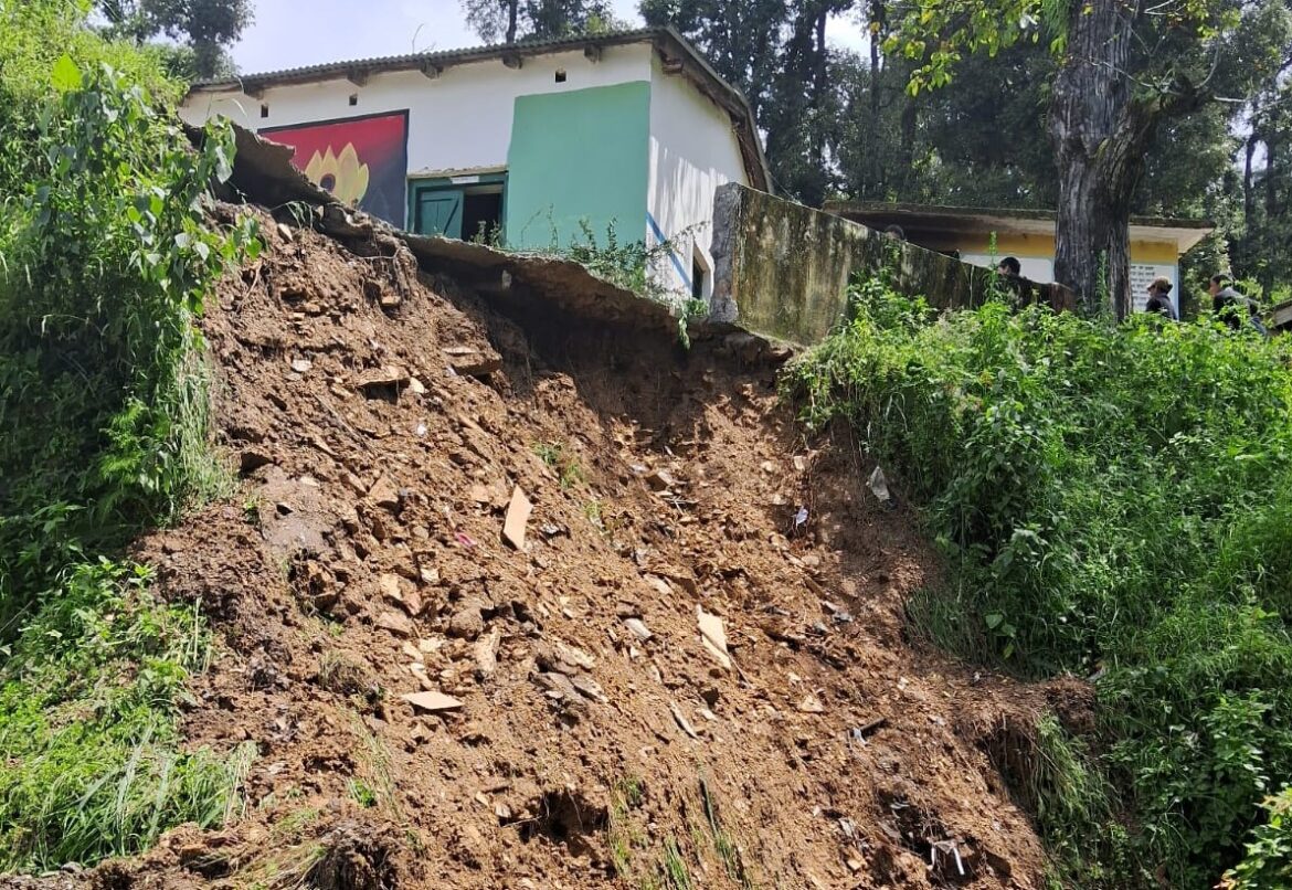 देवाल (चमोली)। चमोली जिले के देवाल विकास खंड के सैनिक बाहुल्य गांव सवाड स्थित राजकीय इंटर काॅलेज का कैम्पस और खेल का मैदान के चारों ओर भूस्खलन होने से स्कूल के भवन पर संकट के बादल मंडरा रहे हैं। कभी भवन धराशायी हो सकता है। अभिभावकों ने प्रदेश सरकार से स्कूल की समस्याओं के निराकरण की मांग की है।