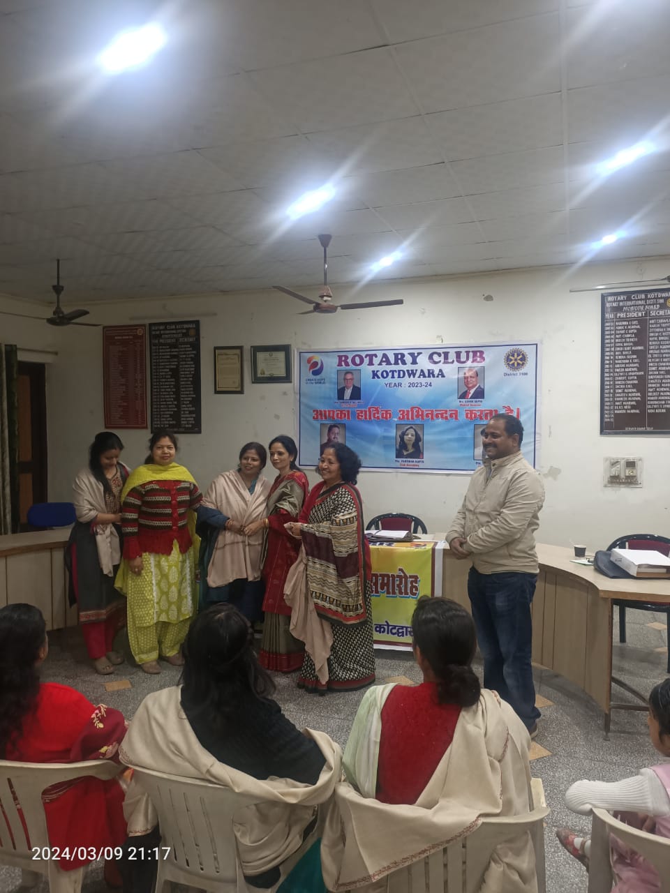 कोटद्वार । रोटरी क्लब कोटद्वार के तत्वावधान में अन्तरराष्ट्रीय महिला दिवस के उपलक्ष्य मे विभिन्न क्षेत्रों की तीन महिलाओ को व क्लब की दो महिलाओं को सम्मानित किया गया । रविवार को नजीबाबाद रोड़ स्थित रोटरी सामुदायिक भवन में आयोजित समारोह का शुभारंभ अध्यक्ष कुलदीप अग्रवाल ने किया । इस अवसर पर उन्होंने कहा कि राष्ट्र निर्माण में महिलाओ का भी बहुत बड़ा हाथ है ।आज महिलाओं को और अधिक सशक्त व मजबूत बनाने की जरूरत है । कहा कि आज महिलाए विभिन्न गतिविधियो मे बढ़ चढ़कर भाग ले रही है । हमें महिला सशक्तिकरण के लिए और अधिक प्रयास करने होंगे ।
