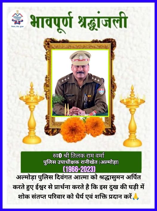 अल्मोड़ा : जनपद अल्मोड़ा के रानीखेत सर्किल के CO तिलक राम वर्मा का दिल का दौरा पड़ने से निधन हो गया। उनके निधन से शोक की लहर है। वह 10 फरवरी 1998 को पुलिस विभाग में उप निरीक्षक के पद पर भर्ती हुए थे। उनके द्वारा विभिन्न जनपदों में थानाध्यक्ष व कोतवाल के पद पर नियुक्त रहते हुए सेवाएं दी गई। 26 मई 2020 को पुलिस उपाधीक्षक के पद पर पदोन्नत होने के बाद सीओ सीआईडी हल्द्वानी फिर CO रानीखेत के पद पर तैनात रहे।बताया जाता है की CO वर्मा अपनी भतीजी की शादी में शामिल होने के लिए छुट्टी पर अपने घर काशीपुर गए थे। 3 दिसंबर को उनकी भतीजी की शादी थी। बीती रात अचानक उनके सीने में दर्द हुआ। उनके परिजन उन्हें मुरादाबाद रोड स्थित एक निजी अस्पताल में ले गये। जहां डॉक्टरों ने उन्हें मृत घोषित कर दिया।
