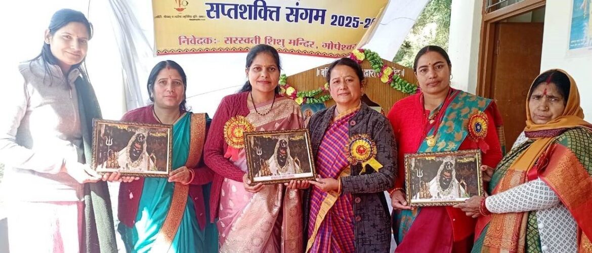 गोपेश्वर (चमोली)। सरस्वती शिशु मंदिर गोपेश्वर में सप्त शक्ति संगम कार्यक्रम धूमधाम से मनाया गया। शिशु मंदिर में आयोजित कार्यक्रम में विद्यालय परिवार से जुड़ी मां बहनों ने भाग लिया। इस दौरान पर्यावरण के संबंध में भारतीय दृष्टि तथा भारत के विकास में महिलाओं की भूमिका पर विस्तार से चर्चा की गई। इस अवसर पर वक्ताओं का कहना था कि भारतीय नारी मात्र एक व्यक्ति नहीं अपितु संपूर्ण चेतना का प्रतीक है। नारी परिवार की आधारशीला, समाज की प्रेरणा और राष्ट्र की आत्मा है। नारी संपूर्ण मानवता और प्रकृति की दायित्वधारणी के रूप में सदियों से प्रतिष्ठित रही है। इसके चलते ही भारतीय संस्कृति में नारी को शक्ति, करूणा, ममता, समपर्ण तथा त्याग का स्वरूप माना गया है। वह हर घर परिवार की मर्यादाओं की रक्षक, समाज निर्माण की पथ प्रदर्शिका के साथ-साथ माता, बहन, बेटी आशा के किरण के रूप में देखी जा सकती है। इस अवसर पर जीजीआईसी गोपेश्वर की राखी चौहान ने सप्त शक्ति संगम कार्यक्रम के बारें में विस्तार से जानकारी दी। मीना तिवारी की अध्यक्षता में आयोजित कार्यक्रम मंें आभा नेगी ने कार्यक्रम की रूपरेखा प्रस्तुत की। इस दौरान प्राधानाचार्य सुरेंद्र सिंह रावत, व्यवस्थापक शांति प्रसाद भट्ट, श्रीराम चंद्र भट्ट सरस्वती विद्या मंदिर के प्रधानाचार्य हिम्मत ंिसह चौहान, नीतू, यशोदा, शिखा आदि मौजूद रहे।