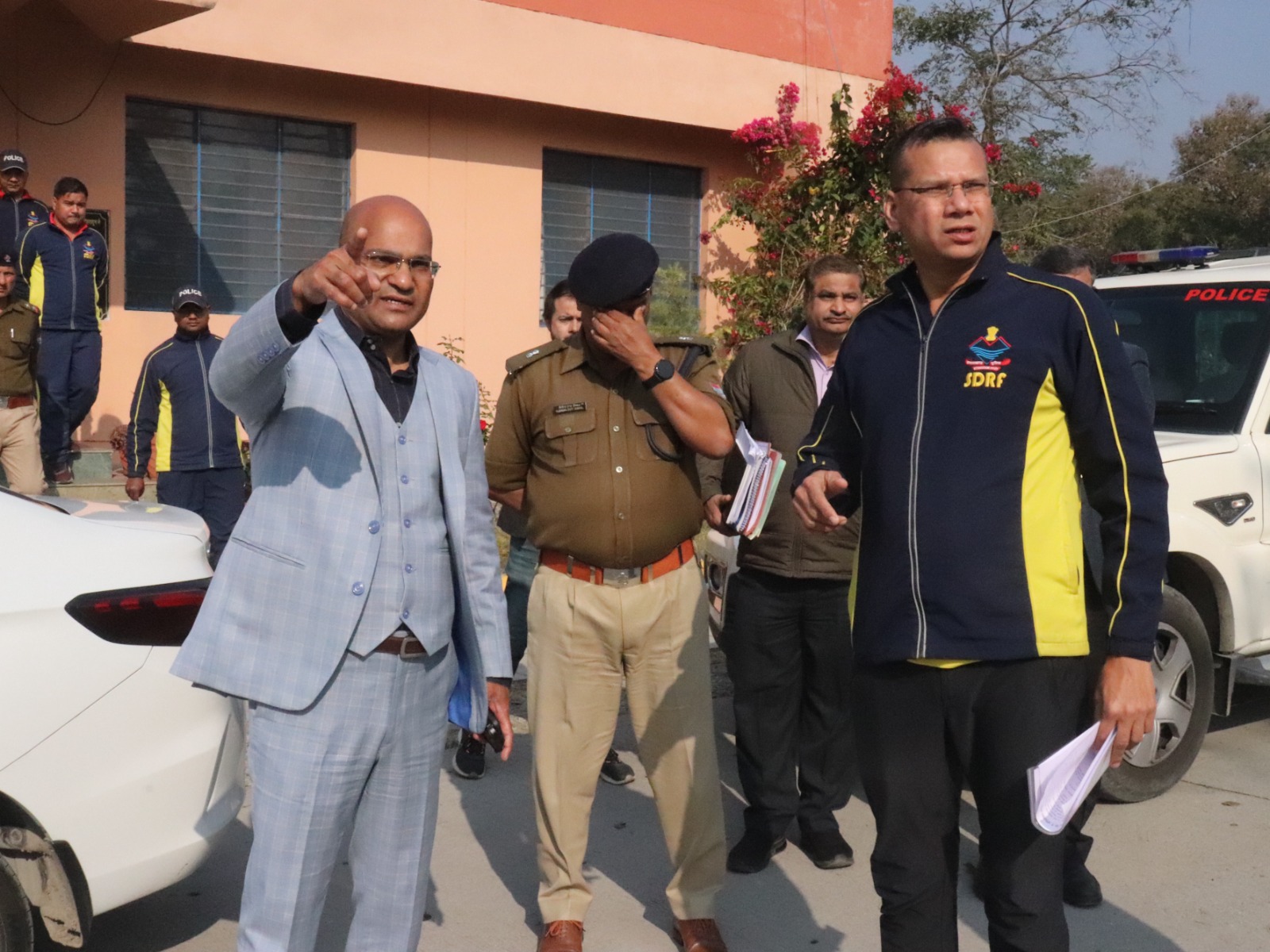 देहरादून : SDRF वाहिनी मुख्यालय, जॉलीग्रांट में आज 06 जनवरी 2024 को सचिव आपदा उत्तराखंड रंजीत सिन्हा द्वारा SDRF वाहिनी में प्रस्तावित द्वितीय फेज के निर्माण कार्यों, प्रथम फेज में नवनिर्मित भवनों के साथ ही आपदा संबंधी व्यवस्थाओं का निरीक्षण किया गया। निरीक्षण के दौरान कमांडेंट SDRF मणिकांत मिश्रा की अगुवाई में सचिव आपदा उत्तराखंड रंजीत सिन्हा द्वारा एडमिन ब्लॉक, ट्रेंनिग ब्लॉक (जिसमें CBRN स्टोर, बचाव कार्यों के दौरान प्रयोग में आने वाले उपकरण, कंप्यूटर लैब), मल्टीपरपज़ हॉल, संचार भवन, वाहिनी स्टोर इत्यादि का निरीक्षण किया गया। निरीक्षण के दौरान सचिव आपदा उत्तराखंड रंजीत सिन्हा का SDRF वाहिनी की आवश्यकता व कार्यो की प्लानिंग पर मुख्य फोकस रहा। निरीक्षण का मुख्य उद्देश्य SDRF वाहिनी में भविष्य में होने वाले कार्यों के संबंध में रहा जिनमे मुख्यतः ट्रेंनिग कॉम्पोनेन्ट, कॉन्फ्रेंस हॉल, उपकरण रखरखाव ब्लॉक, पुरुष व महिला बैरिक, पुराने भवनों का उच्चीकरण, कैंपस की चहारदीवारी को बढ़ाया जाना इत्यादि कार्य प्रस्तावित है।