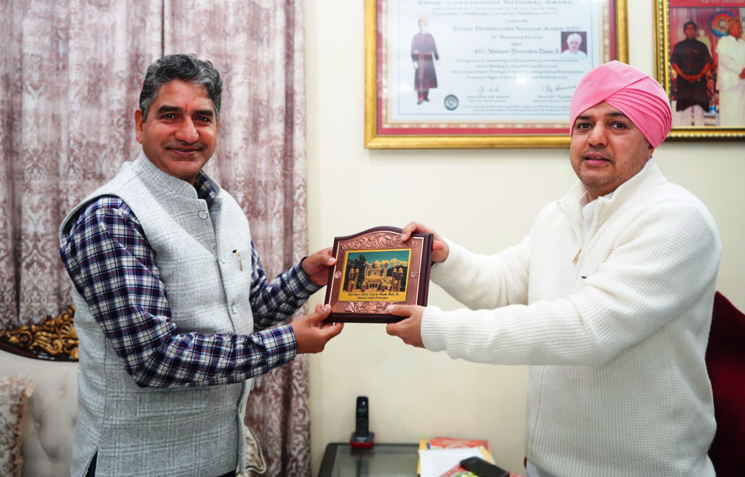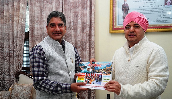 देहरादून। कार्यक्रम क्रियान्वयन विभाग की ओर से प्रकाशित पुस्तक मेरी योजना की प्रतियां सचिव कार्यक्रम क्रियान्वयन विभाग, उत्तराखण्ड शासन दीपक कुमार ने श्रीमहंत देवेन्द्र दास जी महाराज को भेंट की। वह शुक्रवार को श्री दरबार साहिब पहुंचे। उन्होंने श्री दरबार साहिब में माथा टेका और श्रीमहंत देवेन्द्र दास जी महाराज से आशीर्वाद प्राप्त किया। इस अवसर पर सचिव कार्यक्रम क्रियान्वयन विभाग, उत्तराखण्ड शासन दीपक कुमार ने कहा कि एसजीआरआर ग्रुप के संस्थानों के द्वारा शिक्षा, चिकित्सा शिक्षा, स्वास्थ्य एवं उच्च शिक्षा के क्षेत्र में उल्लेखनीय कार्य किये जा रहे हैं। उन्होंने श्री महाराज जी से अनुरोध किया कि इस पुस्तक के माध्यम से सरकार की योजनाओं की जानकारी को एसजीआरआर ग्रुप के सभी संस्थानों तक पहुंचाने में आवश्यक दिशा निर्देश जारी करने की कृपा कीजिए।