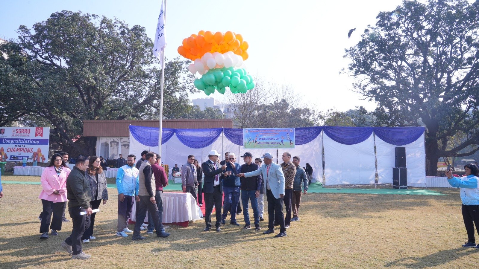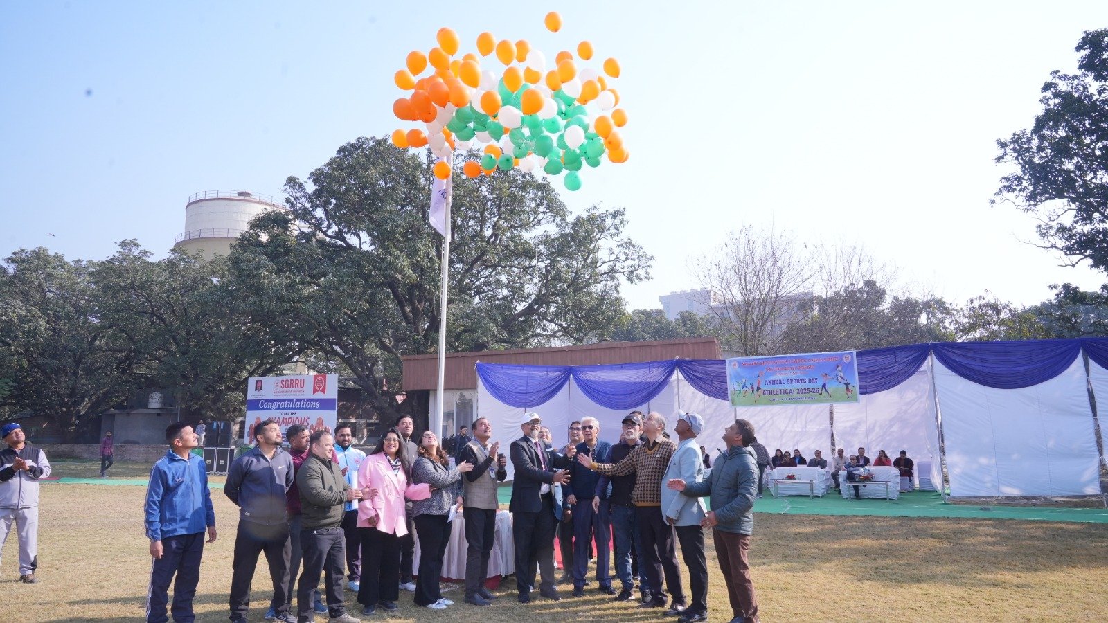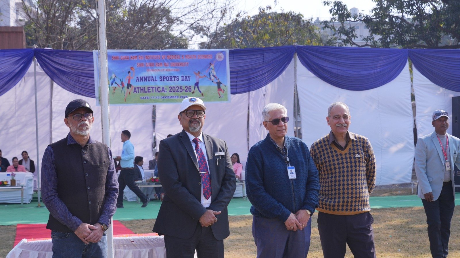 इस अवसर पर श्री गुरु राम राय इंस्टीट्यूट ऑफ मेडिकल एंड हेल्थ साइंसेज के प्राचार्य डॉ. अशोक नायक, प्रमुख चिकित्सा अधीक्षक, श्री महंत इन्दिरेश अस्पताल डॉ. अनिल कुमार मलिक तथा स्पोर्ट्स कमेटी के चेयरमैन डॉ. संजय साधु सहित विश्वविद्यालय परिवार के कई सदस्य उपस्थित रहे।