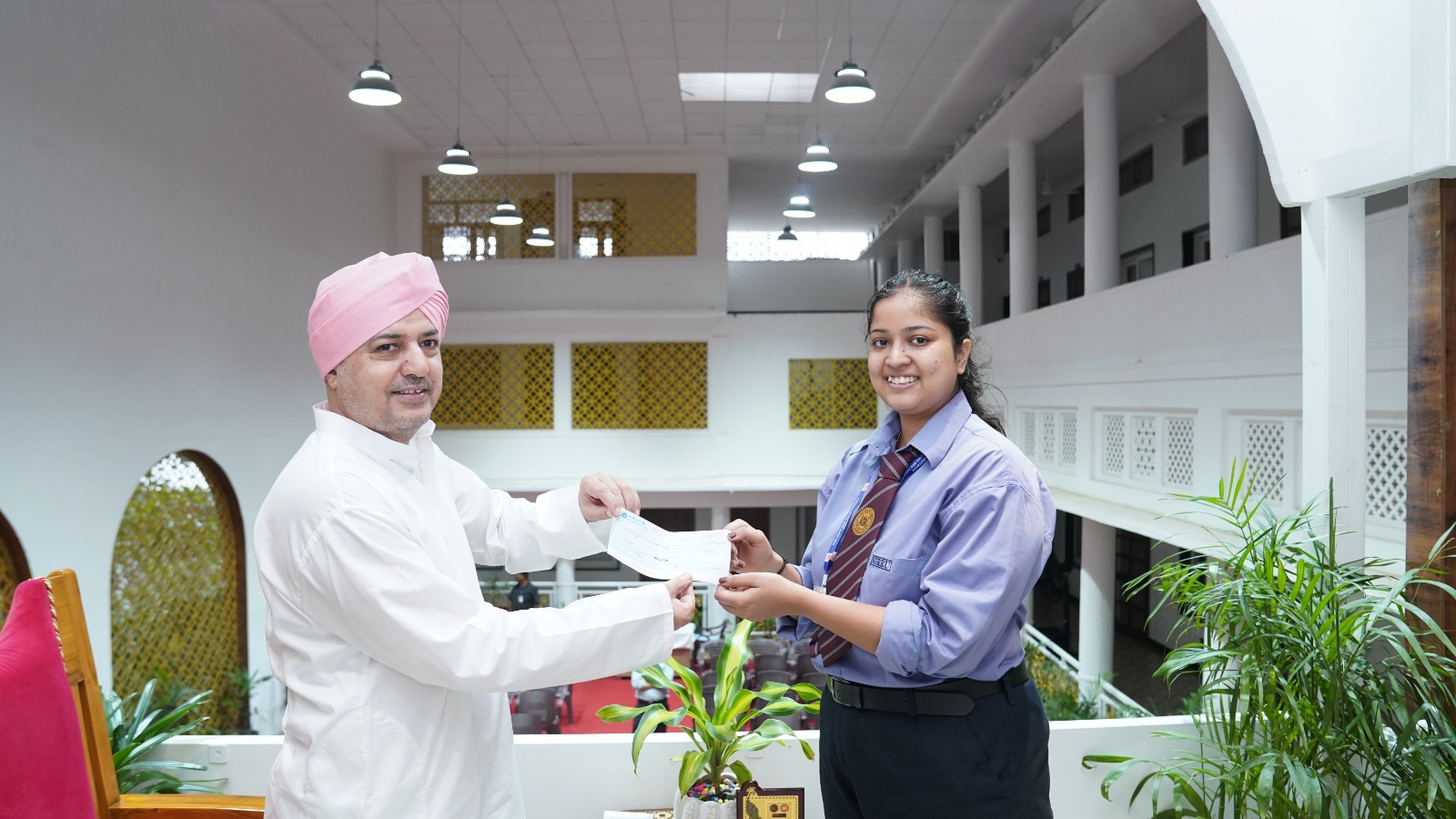 शुक्रवार को श्री दरबार साहिब में आयोजित सम्मान कार्यक्रम श्रीमहंत देवेन्द्र दास जी महाराज ने हंसिका सक्सेना को 25,000 रूपये (पच्चीस हज़ार रुपये) का चैक दे कर सम्मानित किया। काबिलेगौर है कि भारत मंडपम मे आयोजित प्रतियोगिता में 150 से अधिक प्रतिभागियों ने पंजीकरण कराया, जिनमे से केवल 20 वक्ताओ का चयन दो कठिन चरणों- जिसमें स्क्रिप्ट लेखन भी शामिल था के बाद किया गया। देव भूमि उत्तराखंड का प्रतिनिधित्व करने के लिए हंसिका सक्सेना शीर्ष 20 वक्ताओं मे शामिल हुई। उन्होनें भारत मंडपम के भव्य मंच पर अपनी सशक्त वाणी से समस्त दर्शाकों और गणमान्य अतिथियों को प्रभावित किया। एस जीआर आर यूनिवर्सिटी, डीन, छात्र छात्राओं एवं स्टॉफ सदस्यों ने हंसिका की उपालब्धि पर हर्ष व्यक्त किया और उनके उज्ज्वल भविष्य की कामना की.