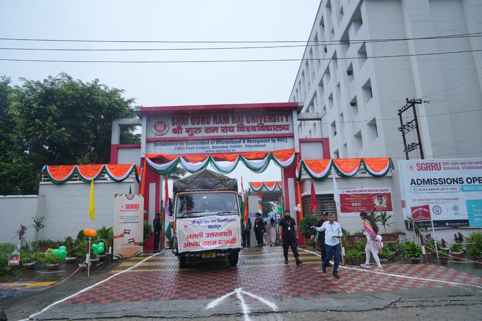 देहरादून। स्वतंत्रता दिवस के अवसर पर श्री गुरु राम राय विश्वविद्यालय ने धराली (उत्तरकाशी) आपदा प्रभावितों के लिए राहत एवं खा़द्य सामग्री भेजी। 2 ट्रक सहित 4 वाहनों मंे राहत एवं खाद्य सामग्री लेकर विश्वविद्यालय की टीम शुक्रवार सुबह रवाना हुई। स्वतंत्रता दिवस के पावन अवसर पर जब पूरा देश आजादी का जश्न मना रहा था, उसी समय श्री गुरु राम राय विश्वविद्यालय ने धराली (उत्तरकाशी) आपदा से पीड़ित परिवारों के जख्मों पर मरहम रखने का संकल्प लिया। मानवीय संवेदनाओं से ओत-प्रोत यह पहल शुक्रवार सुबह तब साकार हुई, जब कुलपति डॉ. कुमुद सकलानी और रजिस्ट्रार डॉ. लोकेश गंभीर ने राहत सामग्री से लदे वाहनों को हरी झंडी दिखाकर रवाना किया। श्री गुरु राम राय विश्वविद्यालय के प्रेसीडेंट श्रीमहंत देवेन्द्र दास जी महाराज ने कहा, “संकट की इस घड़ी में एसजीआरआर परिवार के सभी सदस्या पीड़ितों के साथ कंधे से कंधा मिलाकर हर सम्भव सहयोग करें। यह हमारा धर्म है, और हमारा कर्तव्य भी है।”