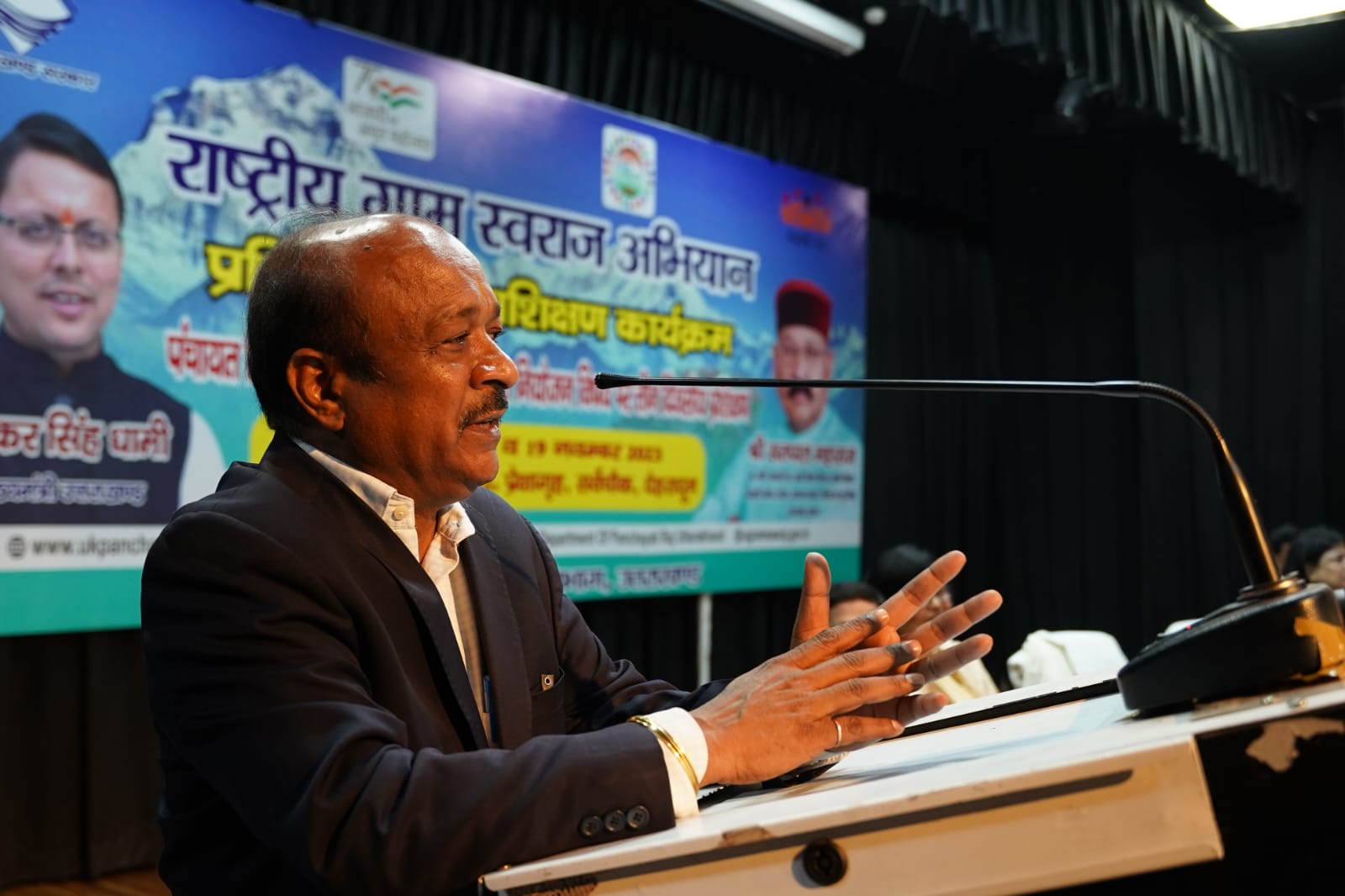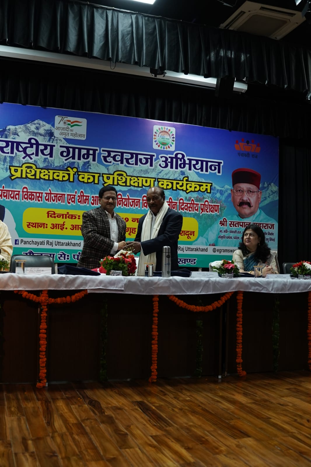 सचिव, पंचायती राज हरीचन्द सेमवाल ने अपने उद्बोधन द्वारा प्रशिक्षण की गुणवत्ता पर ध्यान केंद्रित करने की आवश्यकता पर बल दिया, साथ ही गैर सरकारी संस्थाओं के प्रशिक्षकों को समाज के प्रत्येक व्यक्ति तक पंचायती राज व्यवस्था के लाभों से अच्छादित करने में सेतु की भूमिका निर्वहन करने का आह्वान किया । सचिव ने ग्राम पंचायतों के प्रतिनिधियों की मनोवृत्ति बदलने में मास्टर ट्रेनर्स की महत्वपूर्ण भूमिका निभाने के लिए पूरी तैयारी किए जाने पर बल दिया । साथ ही उन्होंने कहा कि जिन मास्टर ट्रेनर्स की प्रशिक्षण कुशलता मैपिंग के लिए प्रशासनिक व्यवस्था तैयार की गई है, प्रशिक्षण योग्यता और विषय की समझदारी पंचायत प्रतिनिधियों में विकसित किए जाने की रेटिंग के आधार पर उनसे संबंधित गैर सरकारी संगठनों को अग्रिम कार्यावंटन विचार किया जायेगा ।