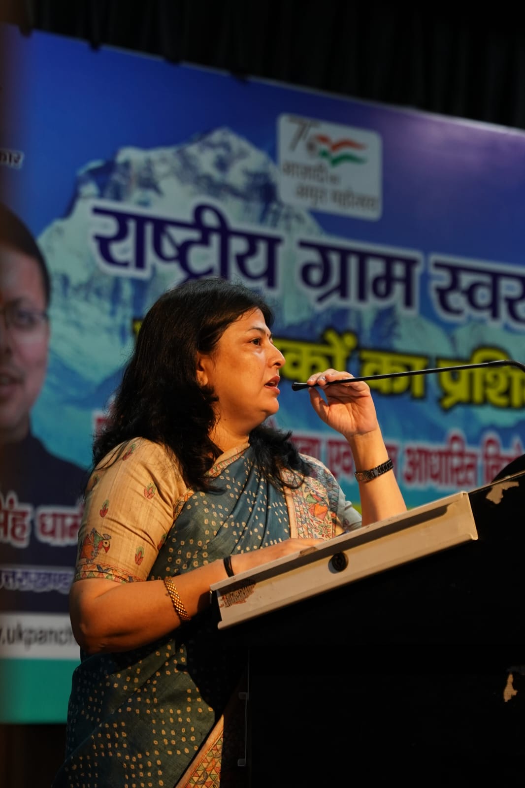 प्रदीप मेहता स्टेट हेड UNDP ने ऑनलाइन जुड़कर थीम 5 स्वच्छ एवं हरित गांव थीम पर चर्चा करते हुए पर्यावरण संरक्षण, स्वच्छ ऊर्जा की आवश्यकता और आपदा प्रबंधन में करने योग्य और न किए जाने वाले कार्यों पर प्रकाश डाला। अनूप नौटियाल, विशेषज्ञ, अपशिष्ट प्रबंधन ने कूड़ा निस्तारण में सामूहिक प्रयास किए और सामाजिक सहभागिता द्वारा पंचायतों को स्वच्छ और हरित गांव में परिवर्तित किए जाने की रूपरेखा पर प्रकाश डाला । सीडीपीओ तरुणा चमोला और डीपीओ उदय प्रताप सिंह ने थीम 3 बाल हितैषी पंचायत और थीम 9 महिला हितैषी पंचायत के लक्ष्य को प्राप्त करने में विभाग द्वारा संचालित योजनाओं से प्रत्येक लाभार्थी को संतृप्त करने में पंचायतों की भूमिका पर प्रकाश डाला।