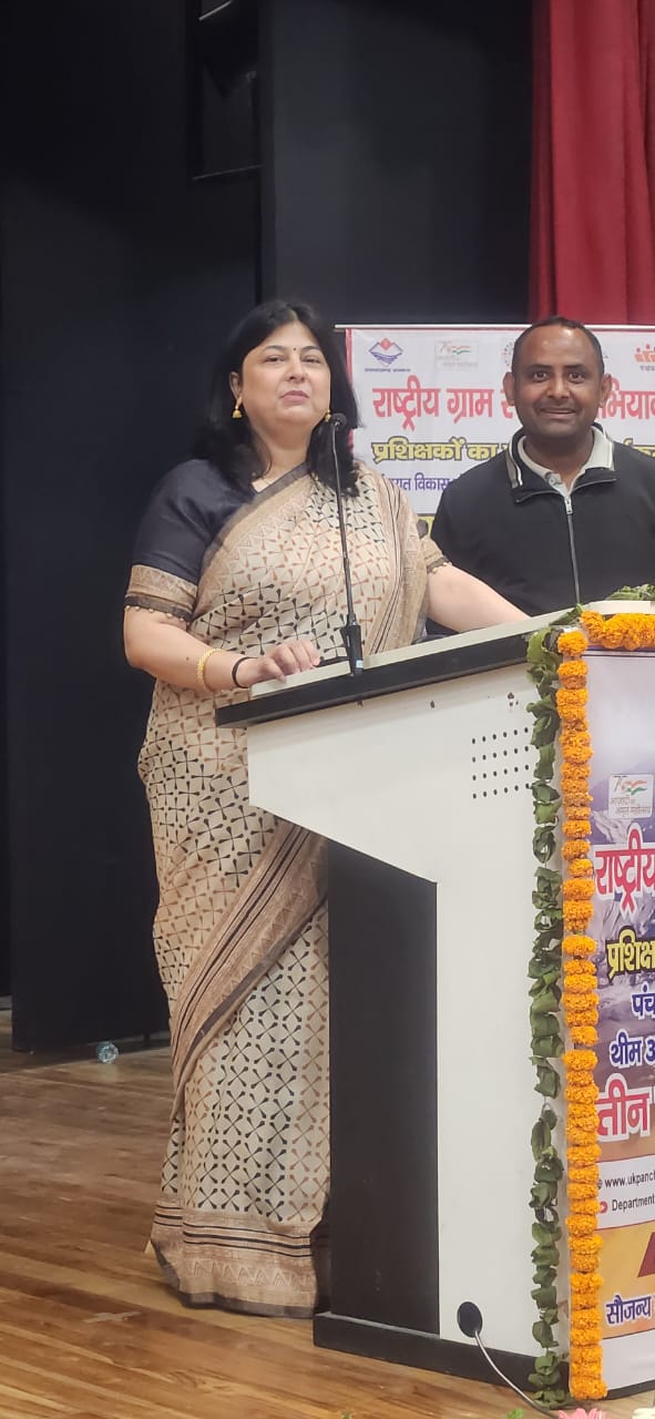 अनूप नौटियाल, विशेषज्ञ, अपशिष्ट प्रबंधन ने कूड़ा निस्तारण में सामूहिक प्रयास किए और सामाजिक सहभागिता द्वारा पंचायतों को स्वच्छ और हरित गांव में परिवर्तित किए जाने की रूपरेखा पर प्रकाश डाला । सीडीपीओ तरुणा चमोला और डीपीओ उदय प्रताप सिंह ने थीम 3 बाल हितैषी पंचायत और थीम 9 महिला हितैषी पंचायत के लक्ष्य को प्राप्त करने में विभाग द्वारा संचालित योजनाओं से प्रत्येक लाभार्थी को संतृप्त करने में पंचायतों की भूमिका पर प्रकाश डाला । करुणाकर, प्रशिक्षण विशेषज्ञ CPPGG ने थीम 2 स्वस्थ गांव के विभिन्न संकेतकों और गतिविधियों पर वक्तव्य दिया । कार्यक्रम का संचालन डॉक्टर विनीता उत्तम ने किया और निदेशालय के समस्त अधिकारियों और कर्मचारियों के संयुक्त प्रयास और परिश्रम से दोनो बैच का प्रशिक्षण सकुशल आयोजन हुआ ।