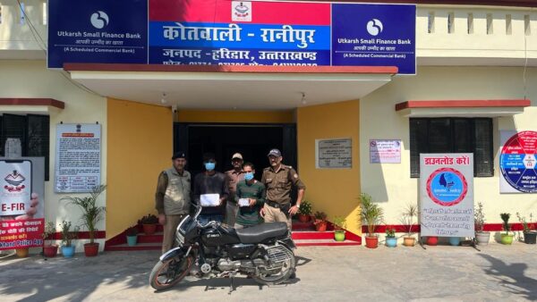 हरिद्वार : एसएसपी अजय सिंह के निर्देशन में अपराधियों पर कड़ा प्रहार, रानीपुर पुलिस ने दुकान में घुसकर तमंचे के बल पर लूट करने वाले 02 अभियुक्त किये गिरफ्तार, लूट का सामान के साथ अवैध तमंचा और बिना नम्बर प्लेट मोटर साईकिल बरामद | 17 जनवरी 2023 को वादी बृजेश नारायण गोयल निवासी एन-276 शिवालिक नगर के साथ दो अज्ञात व्यक्तियों द्वारा उनकी दुकान में घुसकर तमंचे के बल पर उनकी गले की सोने की चैन आदि मारपीट कर लूटने के संबधी दर्ज मुकदमा 25/23 धारा 394 भादवि जिसमें एक वृद्ध व्यक्ति के साथ हुई इस संनसनीखेज घटना के अनावरण हेतु एसएसपी अजय सिंह द्वारा दिये गये कड़े दिशा-निर्देशन के अनुपालन में थाना रानीपुर से अलग-अलग पुलिस टीमें गठित की गई | पुलिस टीम द्वारा लगातार सीसीटीवी कैमरों एवं अन्य महत्वपूर्ण साक्ष्यों के आधार पर की गयी मेहनत से दो व्यक्तियों सनी सैनी एवं सनी कुमार को हरकी पैड़ी सीसीआर के पास से लूटे गये जेवरात एवं घटना में प्रयुक्त तमंचा व मोटरसाइकिल के साथ धर दबोचा गया |
