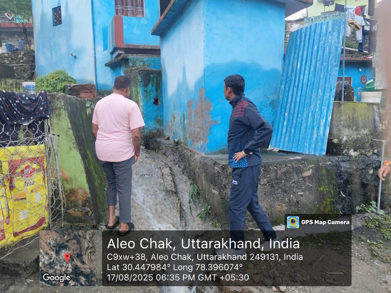 टिहरी : जनपद के अंतर्गत तहसील टिहरी स्थित ग्राम अलेरु कंडीखल क्षेत्र में अति वृष्टि के कारण स्थानीय निवासियों के घरों में पानी भरने की सूचना प्राप्त हुई। इस पर जिलाधिकारी टिहरी गढ़वाल नितिका खण्डेलवाल के निर्देशानुसार आज 17 अगस्त 2025 को उपजिलाधिकारी संदीप कुमार द्वारा प्रभावित क्षेत्र का स्थलीय निरीक्षण किया गया।