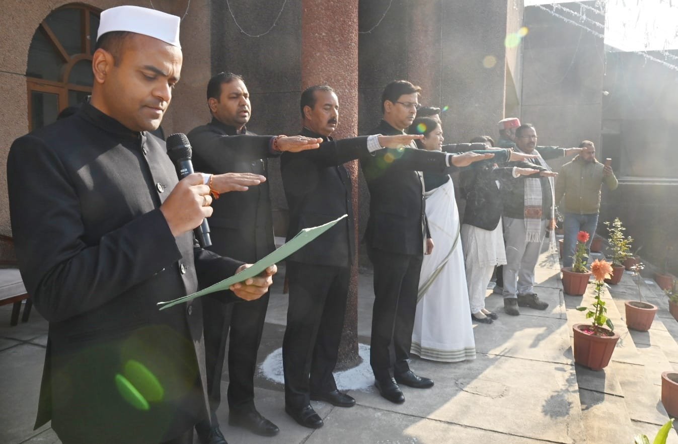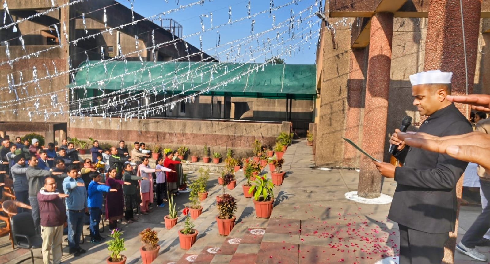 इस अवसर पर उपस्थित अधिकारियों एवं कर्मचारियों को संविधान की उद्देशिका की शपथ दिलाई गई ।