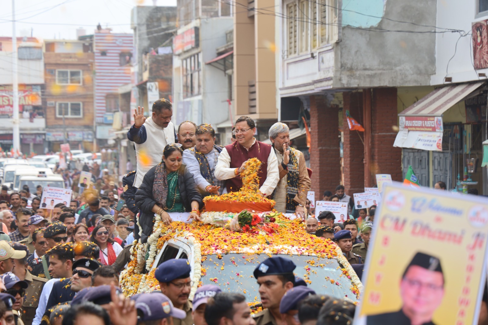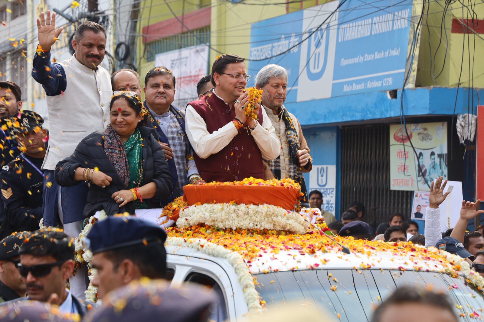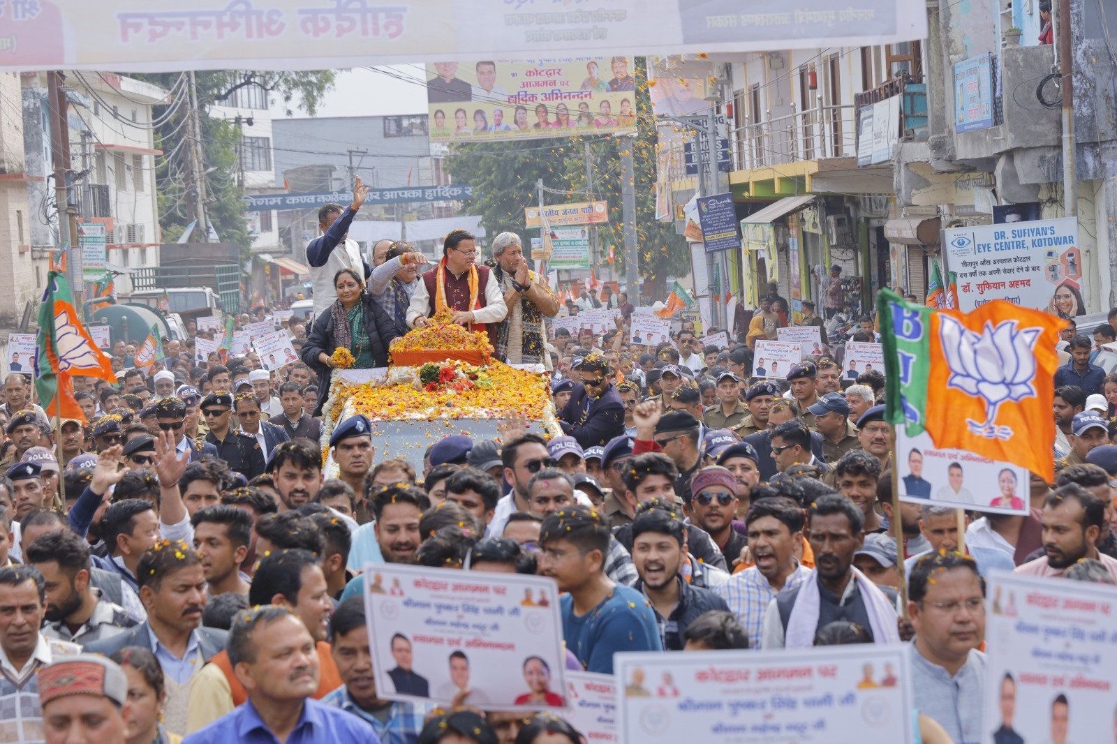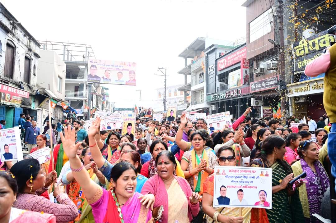 इस दौरान पूर्व मुख्यमंत्री और वर्तमान सांसद तीरथ सिंह रावत ने कहा कि माननीय प्रधानमंत्री के नेतृत्व में भारत का स्वाभिमान लौट आया है। उन्होंने सबको साथ लेते हुए देश के लिए जो काम किया है उसे हमारा देश चहुंमुखी विकासपथ पर अग्रसर हो रहा है। इस दौरान विधानसभा अध्यक्ष विधायक कोटद्वार रितु खंडूरी ने कहा कि मुख्यमंत्री ने कोटद्वार में आई आपदा के दौरान त्वरित गति से बाढ़ सुरक्षात्मक कार्य संपन्न करवाए। प्रदेश की वर्तमान सरकार महिला और बच्चों के स्वास्थ्य, सुरक्षा, स्वतंत्रता के लिए अनेक योजनाएं संचालित कर रही हैं।कार्यक्रम के मुख्य स्थल पर पहुंचने से पहले मुख्यमंत्री ने महाराज वेडिंग प्वाइंट से बद्रीनाथ मार्ग झंडाचौक होते हुए नगर निगम के समीप मोंटसरी स्कूल तक रोड-शो किया । इस अवसर पर विधायक लैंसडाउन दिलीप सिंह रावत व विधायक यमकेश्वर रेनू बिष्ट, गौ सेवा आयोग के अध्यक्ष राजेंद्र अन्थवाल, पूर्व विधायक शैलेंद्र रावत, जिलाधिकारी गढ़वाल डॉ आशीष चौहान, वरिष्ठ पुलिस अधीक्षक श्वेता चौबे, मुख्य विकास अधिकारी अपूर्वा पाण्डेय सहित बड़ी संख्या में जनमानस उपस्थित था।