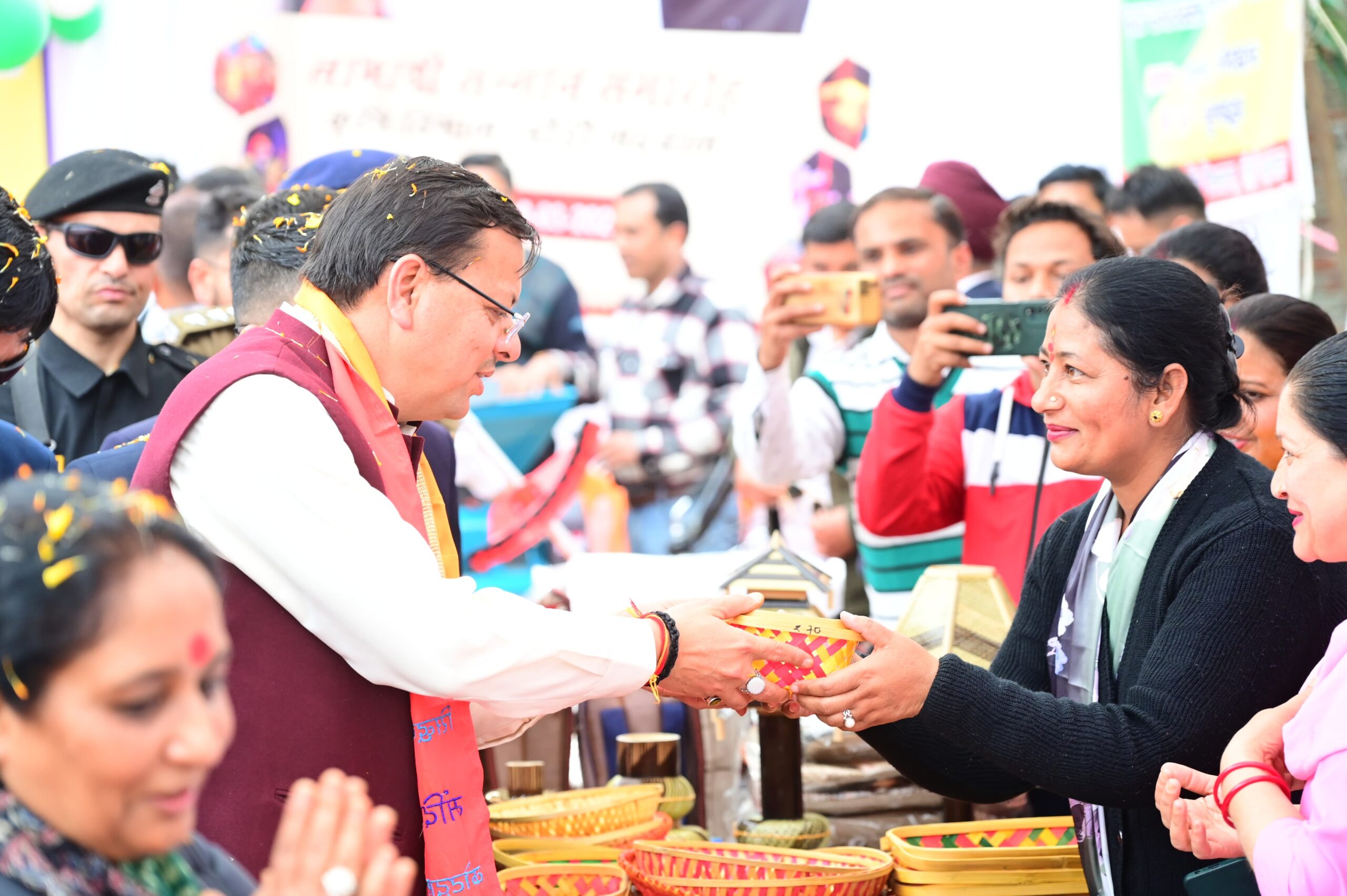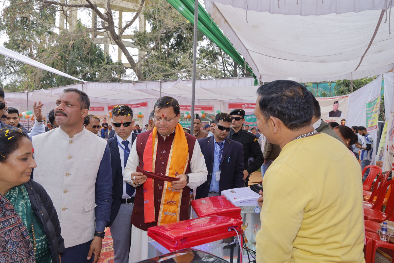 और इस दौरान मुख्यमंत्री के साथ उनके स्वागत और अभिनंदन में विशाल जैन समुदाय उमड़ पड़ा। कार्यक्रम स्थल पर मत्स्य, राष्ट्रीय शहरी आजीविका मिशन, राष्ट्रीय ग्रामीण आजीविका मिशन, कृषि, उद्यान, ग्रामीण उद्यम वेग वृद्धि परियोजना, जलागम, डेयरी, पशुपालन, निर्वाचन, सहकारिता, समाज कल्याण, चिकित्सा, स्वास्थ्य एवं परिवार कल्याण आदि विभागों के स्टॉल लगाए गए थे जिससे लोगों ने अपनेआप को लाभान्वित किया। इस दौरान राज्यसभा सांसद महेंद्र भट्ट ने कहा कि प्रधानमंत्री नरेंद्र मोदी के अथक प्रयासों से ही कोविड काल जैसी विकट परिस्थितियों से निपटने में सक्षम हुए और न केवल भारत की जनता को टीकाकरण और राशन उपलब्ध करवाया बल्कि विदेश तक भी कोविड वैक्सीन पहुंचाई। कहा कि आज सभी बहनों के घर गैस चूल्हा है और अब धुएं की बीमारी से महिलाएं मुक्त रहेगी। उन्होंने कहा देश- प्रदेश के विकास के लिए जो भी आवश्यक होगा उसके लिए हमारी सरकार प्रयासरत रहेगी।