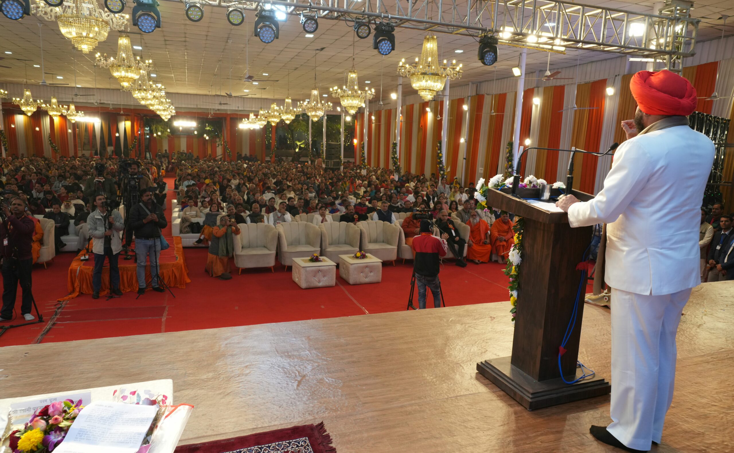 राज्यपाल ने कहा कि स्वामी जी किसी परिचय के मोहताज नहीं हैं। परम पूज्य स्वामी अवधेशानंद गिरि जी महाराज अद्वितीय-उत्कृष्ट वक्ता, भारतीय संस्कृति के पर्यवेक्षक एवं संरक्षक, साधु-समाज के आदर्श तथा अंधकारमय चेतना में आत्म-जागरण की तत्परता उत्पन्न करने वाले साधक व सत्पुरुष हैं। उन्होंने कहा कि स्वामी जी का दिव्य स्वरूप करोड़ों लोगों के लिए एक प्रेरणा पुंज है।