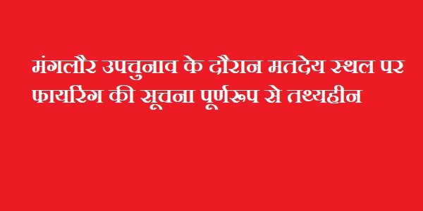 हरिद्वार : मंगलौर फायरिंग प्रकरण में जिला प्रशासन हरिद्वार ने बताया कि मंगलौर उपचुनाव के दौरान मतदेय स्थल पर फायरिंग की सूचना पूर्णरूप से तथ्यहीन है।