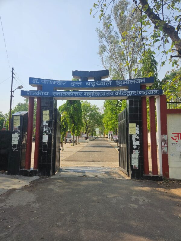 कोटद्वार। डॉक्टर पितांबर दत्त हिमालयान राजकीय स्नातकोत्तर महाविद्यालय में स्नातक प्रथम वर्ष की 1800 सीटों के लिए समर्थ पोर्टल पर प्रवेश आवेदन की प्रक्रिया 30 अप्रैल से प्रारंभ हो गई है। इस आशय की जानकारी कॉलेज की प्राचार्य प्रोफेसर जानकी पवांर ने दी। प्राचार्य ने बताया कि शैक्षिक सत्र 2024-25 के लिए महाविद्यालय में प्रवेश प्रक्रिया गतिमान है। वर्तमान में महाविद्यालय में 4 संकाय अस्तित्व में है जिसमें कला संकाय के अंतर्गत 12 संस्कृत, हिंदी, अंग्रेजी, समाजशास्त्र ,दर्शनशास्त्र, अर्थशास्त्र, राजनीति शास्त्र, इतिहास , गृह विज्ञान, भूगोल, चित्रकला तथा संगीत विषयों में कुल 800 सीटें, विज्ञान संकाय के अंतर्गत 2 ग्रुपों बायो वर्ग तथा गणित वर्ग में कुल 640 सीटें, वाणिज्य संकाय के अंतर्गत स्नातक स्तर पर 320 सीटें हैं । स्ववित पोषित कोर्स बीएससी बायोटेक्नोलॉजी तथा बीए जर्नलिस्म एंड मास कम्युनिकेशन में पृथक से 40 सीटें स्वीकृत है और प्रवेश के लिए उपलब्ध है। प्राचार्य ने जानकारी दी कि पंजीकरण 30 अप्रैल 2024 से प्रारंभ हो गया है तथा पंजीकरण की अंतिम तिथि 31 मई 2024 है, उन्होंने प्रवेश के इच्छुक छात्र, छात्राओं को समर्थ पोर्टल पर जाकर रजिस्ट्रेशन एवं प्रवेश आवेदन प्रक्रिया को पूरा करने को कहा है ।