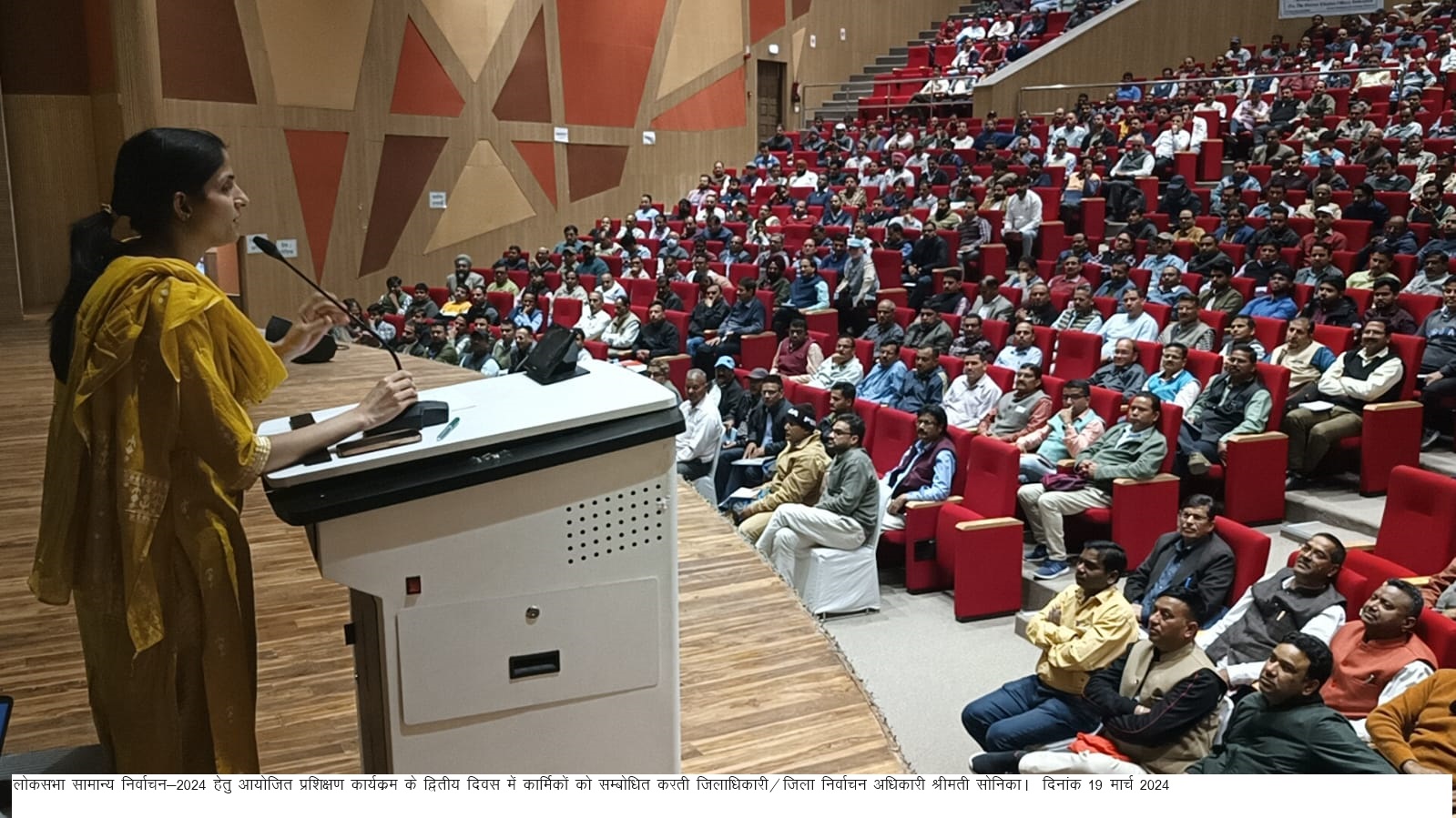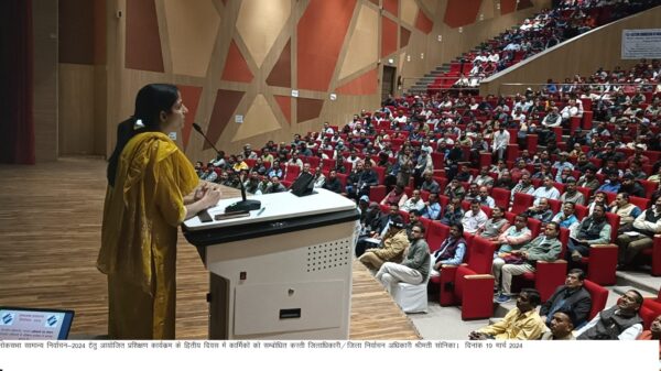 देहरादून : लोकसभा सामान्य निर्वाचन-2024 को शांतिपूर्वक एवं निष्पक्ष सम्पन्न कराने हेतु उत्तराखण्ड पर्यटन विकास बोर्ड के प्रेक्षागृह में आयोजित किये जा रहे पीठासीन अधिकारियों के प्रशिक्षण कार्यक्रंम के दूसरे दिन आज मास्टरट्रेनर द्वारा प्रशिक्षण दिया गया। जिलाधिकारी/जिला निर्वाचन अधिकारी सोनिका ने प्रशिक्षण कार्यक्रम के दौरान निष्पक्ष एवं पारदर्शिता के साथ निर्वाचन सम्पन्न कराने हेतु कार्मिकों की शंकाओं का किया समाधान।  उन्होंने कहा कि चुनाव को बोझ न समझे बल्कि लोकतंत्र के इस महापर्व में जिम्मेदारी से अपने दायित्वों का निर्वहन करते हुए सफलता पूर्वक सम्पन्न कराएं।