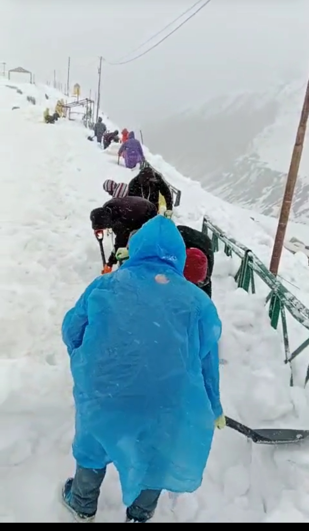 जिलाधिकारी के निर्देशन में तत्परता से किया जा रहा है बर्फ हटाने का कार्य