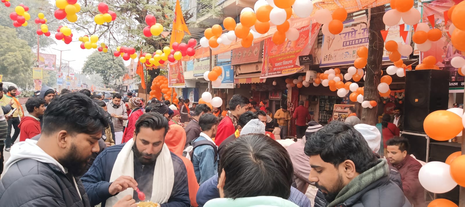 ज्वालापुर : जिला परिषद मार्केट के व्यापारियों ने किया भण्डारें का आयोजन। 22 जनवरी 2024 के दिन भगवान श्रीराम के अयोध्या में प्राण प्रतिष्ठा के अवसर पर जिला परिषद मार्केट के दुकानदारों ने भव्य कार्यक्रम कर भंडारे का आयोजन किया। कार्यक्रम का नेतृत्व सुनील अरोड़ा एवं विपिन कश्यप के द्वारा सयुक्त रूप से किया गया। भगवान श्रीराम के प्राण प्रतिष्ठा के इस अवसर पर इस भंडारे में तहसील परिसर के लोगो के साथ-साथ राहगीरों को प्रसाद वितरण किया गया। कार्यक्रम का नेतृत्व कर रहे सुनील अरोड़ा एवं विपिन कश्यप ने बताया की 500 वर्षो के उपरांत ये अवसर हम भारतवासियों को मिला जो हमारे लिए एक गर्व की बात है, उन्होंने कहा कि हम प्रधानमंत्री नरेंद्र मोदी का धन्यवाद करते है जिन्होंने हमारे सनातन धर्म का मान बढ़ाया है। इस अवसर पर प्रदीप वशिष्ठ, प्रमोद कुमार, विपिन शर्मा, गोबिन, हिमांशु, कपिल, मनीष राज वर्मा, नरेश शर्मा, राकेश आदि लोग उपस्थित रहे।