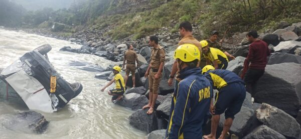 उत्तरकाशी : जनपद उत्तरकाशी में हुआ दर्दनाक हादसा, 02 गम्भीर घायल व 04 की मौत, SDRF ने किया राहत एवं बचाव कार्य। आज 15 सितंबर 2023 को SDRF को सूचना प्राप्त हुई कि उत्तरकाशी से भटवाड़ी की ओर जाते हुए गंगोत्री राष्ट्रीय राजमार्ग-108 पर सेंजी तथा ओंगी के बीच आर्य विहार आश्रम के पास एक वाहन नदी में गिरने से दुर्घटनाग्रस्त हुआ है, जिसमें राहत एवं बचाव कार्य हेतु SDRF टीम की आवश्यकता है। उक्त सूचना प्राप्त होते ही SDRF रेस्क्यू टीम मय आवश्यक उपकरणों के तत्काल घटनास्थल के लिए रवाना हुई। उक्त घटना में एक ओमनी कार (UK10TA-0941) जिसमें 06 लोग सवार थे, अनियंत्रित होकर नदी में गिरने से दुर्घटनाग्रस्त हो गयी थी जिसमें 03 लोगों की घटनास्थल पर ही मृत्यु हो गयी थी और एक को अस्पताल में मृत घोषित किया गया व 2 घायल अवस्था में थे। SDRF रेस्क्यू टीम द्वारा स्थानीय पुलिस, DDMA, QRT इत्यादि के साथ मिलकर संयुक्त रेस्क्यू अभियान चलाते हुए लगभग 200 मीटर गहरी खाई में उतरकर घायलों को निकालकर उपचार हेतु अस्पताल पहुँचाया व अन्य 03 मृतकों के शवों को निकालकर रोप व बॉडी बैग की सहायता से कड़ी मशक्कत करते हुए मुख्य मार्ग पर पहुँचाया व अग्रिम कार्यवाही हेतु जिला पुलिस के सुपर्द किया गया।