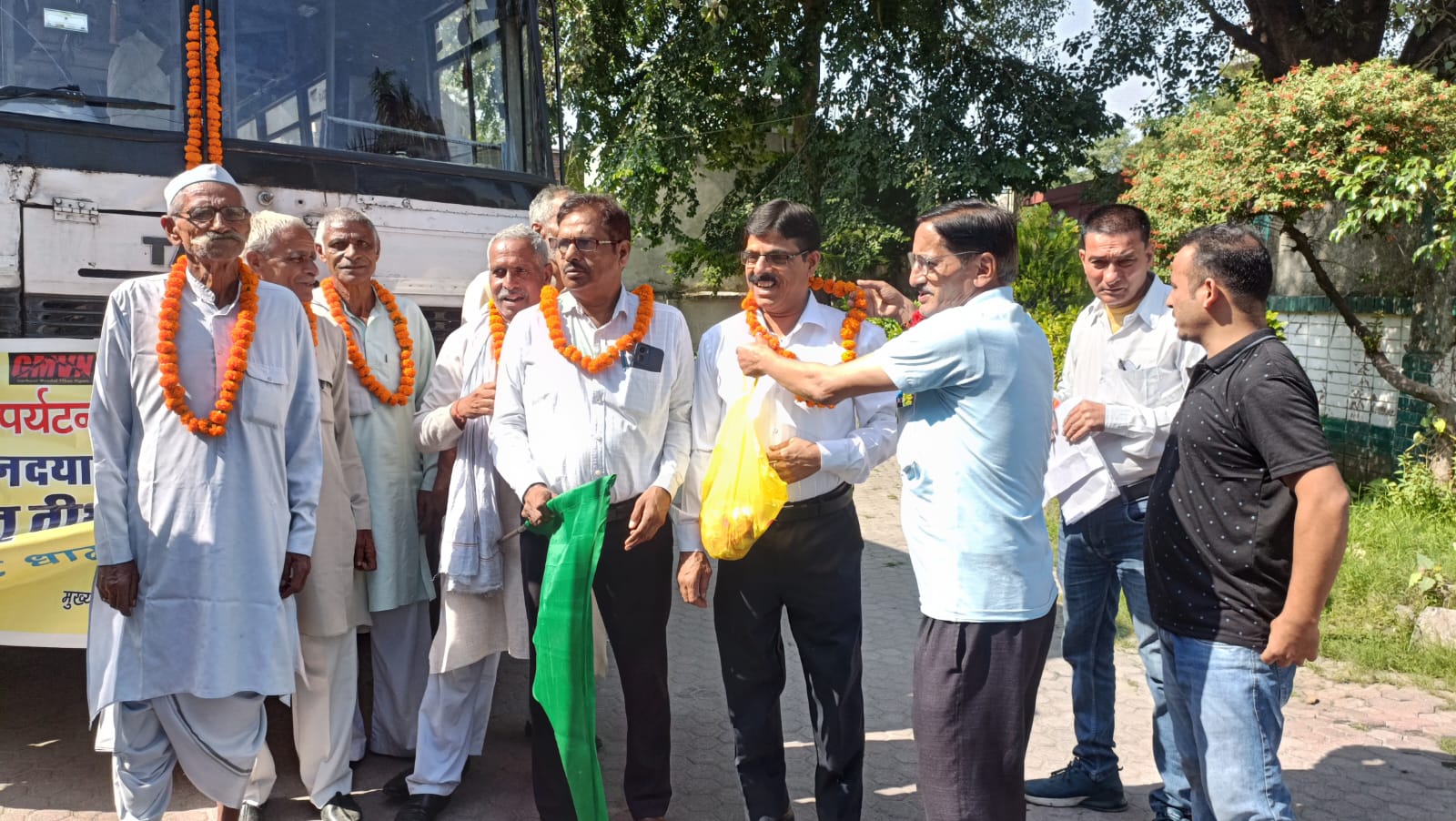 हरिद्वार : जिला पर्यटन अधिकारी सुरेश सिंह यादव ने मातृ-पितृ यात्रा योजना के अन्तर्गत बुधवार को जनपद हरिद्वार के 29 बुजुर्गों को नि शुल्क यात्रा कराने के क्रम में जागेश्वर धाम के लिये हरी झंडी दिखाकर मंगल यात्रा की कामना करते हुये रवाना किया। इस अवसर पर वरिष्ठ प्रबंधक गढ़वाल मंडल विकास निगम श्री बेंजवाल, मनोज तोमर, गंभीर सिंह, तीरथ, नरेन्द्र हनुमत सहित सम्बन्धित पदाधिकारी एवं अधिकारीगण उपस्थित थे।