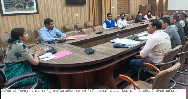 देहरादून : जिलाधिकारी सोनिका की अध्यक्षता में डेयरियों के नियमानुसार संचालन के सम्बन्ध नगर निगम, पशुपालन विभाग, प्रदूषण नियंत्रण बोर्ड के अधिकारियों की उपस्थिति में डेयरी संचालकों के साथ ऋषिपर्णा सभागार कलेक्ट्रेट में बैठक आयोजित की गई।जिलाधिकारी ने जनपद में संचालित डेयरी तथा पंजीकृत डेयरी की स्थिति जानने पर अवगत कराया गया कि वर्तमान में लगभग 500 डेयरी संचालित है 119 आवेदन पंजीयन के लिए प्राप्त हुए जिनमें 93 के लाईसेंस बन गए है। जिलाधिकारी ने नगर निगम, पशु पालन विभाग एवं प्रदूषण निंयत्रण बोर्ड के अधिकारियों को संयुक्त निरीक्षण करते हुए पंजीकरण कार्यों में तेजी लाने तथा बिना पंजीकृत डेरियों के चालान करने के निर्देश दिए।