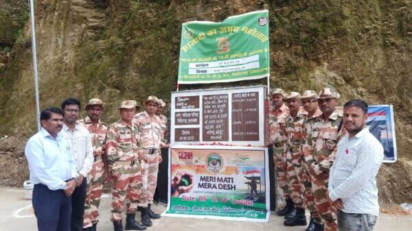 पिथौरागढ़ : नेहरू युवा केन्द्र पिथौरागढ़ व नगरपालिका परिषद के संयुक्त तत्वाधान में “मेरी माटी मेरा देश” कार्यक्रम के तहत ग्राम बजेटी में ग्रामीणों व स्वयंसेवकों/ युवा मण्डलों महिला मण्डलों द्वारा हाथ में मिट्टी लेकर पंचप्राण की शपथ नगरपालिका अध्यक्ष राजेन्द्र रावत जिला युवा अधिकारी योगेष कुमार, अधिशासी अधिकारी राजदेव जायसी, द्वारा संयुक्त रूप से शपथ दिलाई गई तथा अध्यक्ष द्वारा नगर के सभी वार्ड व मोहल्लों में “मेरी माटी मेरा देश” जो पूरे भारतवर्ष में 09 अगस्त से 15 अगस्त तक कार्यक्रमों का आयोजन किया जा रहा है उसमें नगर की अहम भूमिका होनी चाहिए तथा कार्यक्रम को सफल बनाया जा सके,