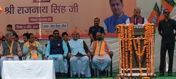 गढ़वाल लोकसभा सीट से भाजपा प्रत्याशी अनिल बलूनी के पक्ष में मतदान करने की अपील करने आए रक्षामंत्री ने कहा कि देश की सीमाओं की रक्षा करने में उत्तराखंड का विषेश योगदान रहा है। उनका कहना था कि पिछले दस सालों में प्रधानमंत्री नरेन्द्र मोदी के नेतृत्व में भारत दुनिया का ताकतवर देश बन चुका है। भारत रक्षा के क्षेत्र में आत्मनिर्भर हो गया है। पहले विदेशों से गोला बारूद मंगाया जाता था। अब देश में ही निर्मित हो रहा है। मिशायलों के निर्माण के बाद भारत ने अब फाइटर प्लेनों के इंजन बनाने की भी तैयारी कर ली है। केंद्र सरकार की उपलब्धियां गिनाते हुए कहा कि वन रैंक वन पेंशन, घर घर नल से जल,उज्वला गैस कनेक्शन, धारा 370 हटाना, समान नागरिकता कानून लागू करना, राम मंदिर निर्माण भी भाजपा की ही देन है। उन्होंने कांग्रेस को निशाने पर लेते हुए कहा कि कांग्रेस के शासन काल में भ्रष्टाचार का बोलबाला था। प्रधानमंत्री नरेन्द्र मोदी ने जन-धन खाते खुलवाकर भ्रष्टाचार को खत्म करने का काम किया है। उन्होंने कांग्रेस को डायनासोर की संज्ञा देते हुए कहा कि वह विलुप्ती के कगार पर पहुंच गई है। अब वह इतनी बूढ़ी हो गई है कि पहाड़ चढ़ना उसके बूते की बात नहीं रह गई है। कांग्रेस के कुनवे में सिरफुटव्वल चल रहा है इसीलिए एक एक करके सभी नेता बाहर निकलते जा रहे हैं। उन्होंने भाजपा प्रत्याशी अनिल बलूनी को जिताकर नरेंद्र मोदी को पुनः प्रधानमंत्री बनाने का आग्रह किया।