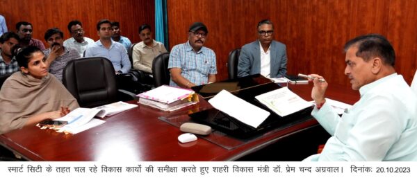 शहरी विकास मंत्री डॉ. प्रेम चन्द अग्रवाल ने अधिकारियों को निर्देशित करते हुए कहा कि दिसम्बर माह में आयोजित होने वाली इन्वेसटर्स समिट से पूर्व स्मार्ट सिटी के अन्तर्गत अवशेष कार्यों को जल्द से जल्द पूर्ण किया जाए। उन्होंने अधिकारियों को समय-समय पर स्मार्ट सिटी के अन्तर्गत हो रहे कार्यों का स्थलीय निरीक्षण करने तथा कार्यों में गुणवत्तापरख तेजी लाने के निर्देश दिये। इस अवसर पर डीएम/सीइओ स्मार्ट सिटी सोनिका तथा अन्य अधिकारीगण उपस्थित रहे।