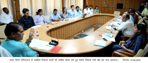 देहरादून : शहरी विकास मंत्री डाॅ. प्रेम चन्द अग्रवाल ने विधान सभा स्थित सभागार कक्ष में अधिकारियों के साथ देहरादून में चल रहे स्मार्ट सिटी परियोजना के विकास कार्यों के संबंध में समीक्षा बैठक ली। शहरी विकास मंत्री डाॅ. प्रेम चन्द अग्रवाल ने स्मार्ट सिटी परियोजना के अंतर्गत हो रहे विभिन्न कार्यों जैसे क्रैच बिल्डिंग, पलटन बाजार में जल भराव, ई-बसों के संचालन, सहारनपुर चैक पर हो रहे ड्रेनेज कार्यों, सीसीटीवी कैमरों की अद्यतन स्थिति, सीवरेज कार्यों की स्थिति के संबंध में अधिकारियों से विस्तृत जानकारी प्राप्त कर अपूर्ण कार्यों को जून 2024 तक पूर्ण करने हेतु निर्देशित किया। उन्होंने स्मार्ट सिटी परियोजना से जुड़े हुए कार्यों के प्रचार-प्रसार हेतु विभिन्न स्थानों पर फ्लैक्सी बोर्ड लगवाने हेतु अधिकारियों को निर्देशित किया।