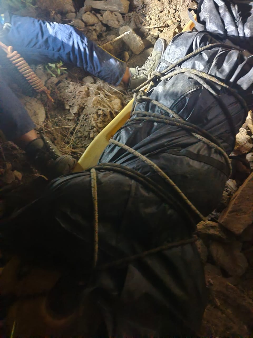 टिहरी : जनपद टिहरी के तोताघाटी के पास यूटिलिटी दुर्घटनाग्रस्त, SDRF ने चलाया रेस्क्यू ऑपरेशन। आज 05 नवंबर 2023 को जिला नियन्त्रण कक्ष, टिहरी द्वारा SDRF को सूचना दी गयी कि तोताघाटी के पास एक यूटिलिटी वाहन अनियन्त्रित होकर लगभग 100 मीटर गहरी खाई में दुर्घटनाग्रस्त हो गया है। उक्त सूचना मिलते ही SI धर्मेंद्र पंवार के हमराह SDRF रेस्क्यू टीम मय रेस्क्यू उपकरणों के तत्काल घटनास्थल के लिए रवाना हुई। SDRF टीम द्वारा घटनास्थल पर पहुँचकर रात्रि के घनघोर अंधेरे व अत्यधिक विषम परिस्थितियों के बीच गहरी खाई में उतरकर वाहन में सवार 02 लोगों में से एक को घायल अवस्था मे बाहर निकाला तथा प्राथमिक उपचार के उपरांत अस्पताल भिजवाया गया जबकि दूसरे व्यक्ति की घटनास्थल पर ही मृत्यु हो गयी थी जिसके शव को मुख्य मार्ग तक पहुँचाकर जिला पुलिस के सुपर्द किया गया।