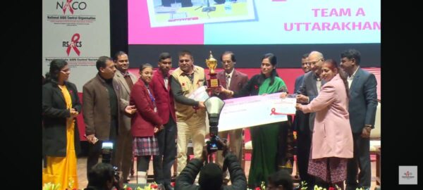 राजस्थान की अपर मुख्य सचिव शुप्रभा सिंह, पुलिस महानिरीक्षक (जेल) विक्रम सिंह, राष्ट्रीय एड्स नियंत्रण संगठन (NACO) से उपमहानिदेशक स्वास्थ्य डॉ. अनूप कुमार पुरी, नाको (NACO) की उपनिदेशक डॉ. भावना राव ने उत्तराखण्ड को तृतीय स्थान प्राप्त करने पर उत्तराखण्ड से अपर परियोजना निदेशक उत्तराखंड राज्य एड्स नियंत्रण समिति डॉ. अजय कुमार,नोडल अधिकारी/रेड क्रास सचिव डॉ. नरेश चौधरी , श्रीराम विद्यामन्दिर श्यामपुर से नोडल अध्यापिका पूनम एवं प्रतिभागी छात्र-छात्रा शुभिकार्पित और नवीन कुमार को 50,000 (पचास हजार) रूपये का चेक, प्रमाण पत्र एवं ट्राॅफी प्रदान की। श्री राम विद्या मंदिर स्कूल श्यामपुर, हरिद्वार के निदेशक राजीव भल्ला एवं प्रधानाचार्या बबीता अग्रवाल श्रीनिवास ने विशेष रूप से अपने स्कूल की नोडल अध्यापिका श्रीमती पूनम एवं विजेता छात्र-छात्रा शुभिकार्पित एवं नवीन कुमार को बधाई दी।