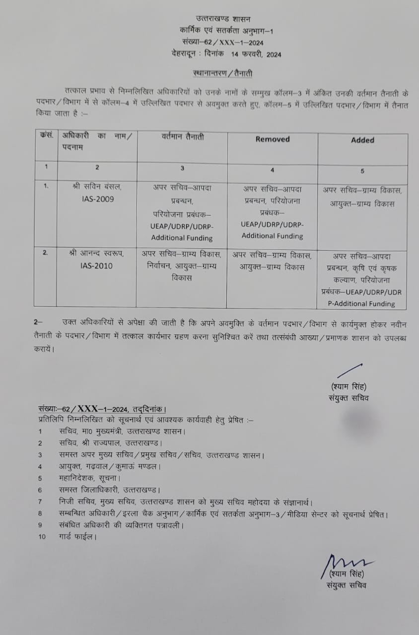 उत्तराखंड शासन ने 02 IAS अधिकारियों के विभागों में किया फेरबदल, देखें सूचि by February 14, 2024 written by February 14, 2024 Share 0FacebookTwitterPinterestWhatsapp देहरादून : उत्तराखंड शासन ने 02 IAS अधिकारियों के विभागों में किया फेरबदल, देखें सूचि Share 0 FacebookTwitterPinterestWhatsapp