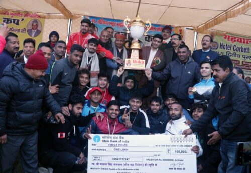 कोटद्वार। गढ़वाल कप का फाइनल मुकाबला उत्तरांचल 11 और तीसरी गढ़वाल के मध्य खेला गया जिसका शुभारंभ हंस कल्चरल फाउंडेशन के दिनेश सिंह रावत एवं अति विशिष्ट अतिथि बुशरा चांद ने संयुक्त रूप से हुआ । मैच के शुरुआती क्षणों में शैलेंद्र नेगी की गोल की बदौलत उत्तरांचल 11ने तीतवाल के ऊपर एक शून्य की बढ़त बना ली और मध्यांतर के बाद राहुल के बोल की बदौलत तीसरी गढ़वाल ने खेल बराबरी पर ला दिया जवाबी हमला करते हुए उत्तरांचल 11 के शैलेंद्र नेगी ने पेनल्टी एरिया के बाहर से गोल दाग कर अपनी टीम को तो 2–1 की बढ़त दिला दी । खेल के अंतिम क्षणों में अमन के गोल ने उत्तरांचल की 11 की जीत पर मोहर लगा दी ।