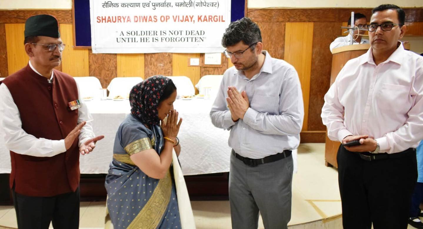 जिला पंचायत सभागार में आयोजित कार्यक्रम के दौरान पुलिस के जवानों और एनसीसी कैडेट्स ने शहीदों को गार्ड ऑफ ऑनर दिया। कार्यक्रम के मुख्य अतिथि कारगित शहीद कृपाल सिंह की धर्मपत्नी विमला देवी और जिलाधिकारी, अधिकारियों और शहीदों के परिजनों ने शहीदों के चित्र पर माल्यार्पण कर श्रद्धांजलि दी। कार्यक्रम का शुभारंभ करते हुए डीएम तिवारी ने वीरनारी शांति राणा, कुसुम लता, शकुंतला देवी, कमला देवी, पार्वती देवी, जयंती देवी, कमला देवी, सरिता देवी और सुलोचना देवी समेत चमोली जनपद के सभी 11 वीर शहीदों के परिजनों को शॉल ओढाकर सम्मानित किया। कार्यक्रम में कारगिल दिवस की पूर्व संध्या पर खेल विभाग की ओर से आयोजित वॉलीबॉल प्रतियोगिता की विजेता और उप विजेता टीम को ट्रॉफी देकर सम्मानित किया गया।