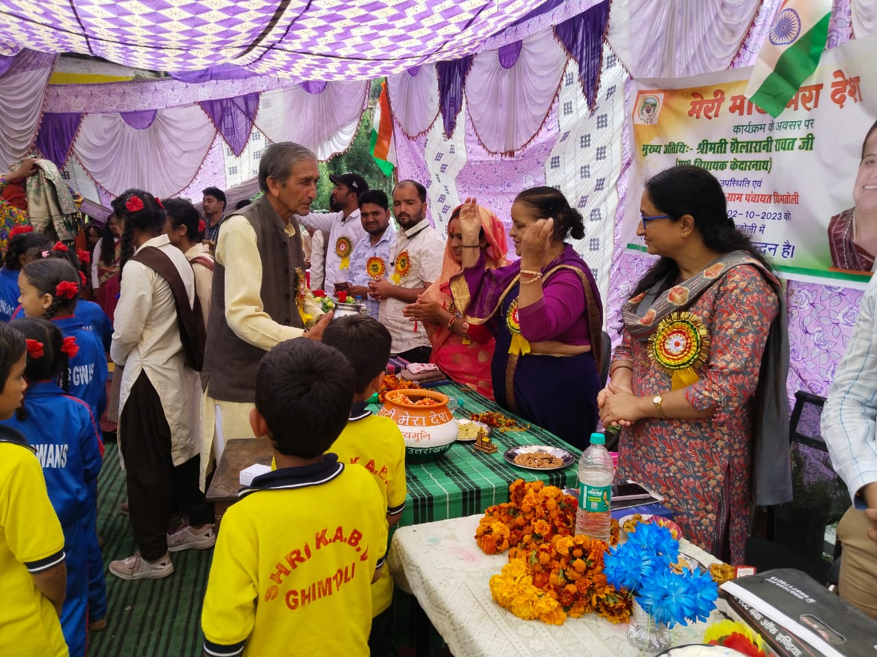 रुद्रप्रयाग : मेरी माटी मेरा देश अभियान के तहत केदारनाथ विधायक शैला रानी रावत सोमवार को घिमतोली क्षेत्र में पहुंची। विधायिका ने स्वारी- ग्वांस स्थिति अमृत सरोवर का अनावरण किया वहीं मेरी माटी मेरा देश अभियान के तहत क्षेत्र के शहीदों के आँगन की मिट्टी भी एकत्रित की। इस दौरान राजकीय इंटर कॉलेज घिमतोली एवं श्री कार्तिकेय आदर्श बाल विद्यालय के छात्र-छात्राओं एवं स्थानीय ग्रामीणों ने पारंपरिक गीतों पर रंगारंग कार्यक्रमों की प्रस्तुति भी दी।